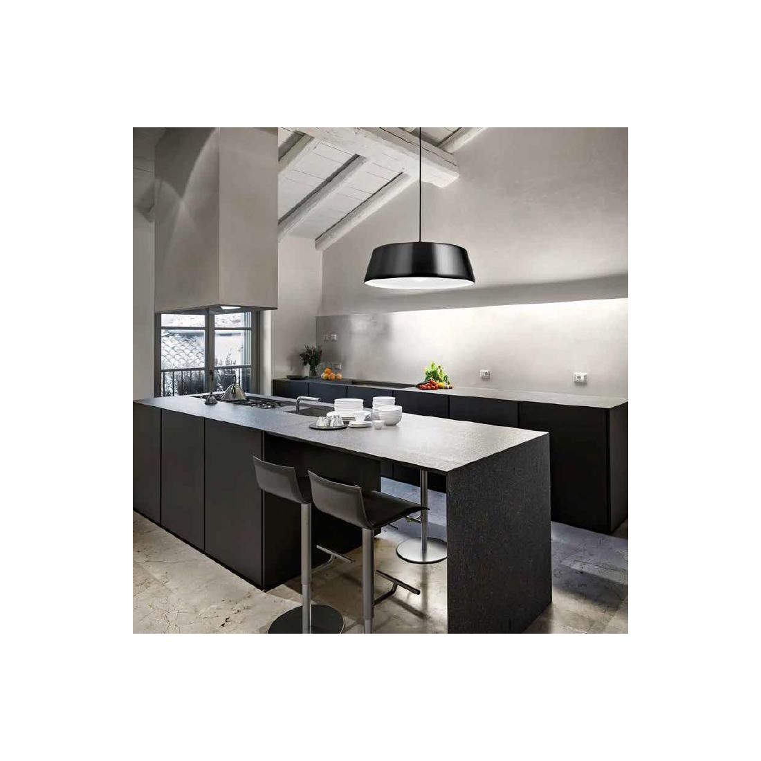 Lampadario a sospensione con una linea sempre attuale, un design che esprime carattere, uniti alla funzionalità e al confort visivo grazie alla colorazione bianca della sezione interna; studiato per illuminare dall'alto l'isola o penisola della vostra cucina che può essere installata singolarmente oppure in serie; pensata per illuminare la cucina della vostra casa ma anche per i tavoli dei ristoranti e banconi di pub e bar, prodotta da Gea Luce.