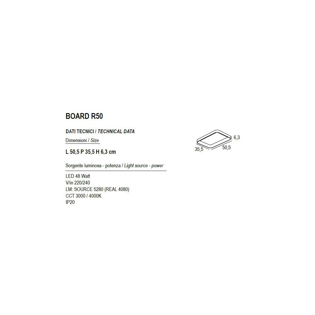 BOARD PLAFONIERA CM 50X50 LED 50W LUCE CCT 3000K-4000K IN METALLO 21 COLORI QUADRATA...