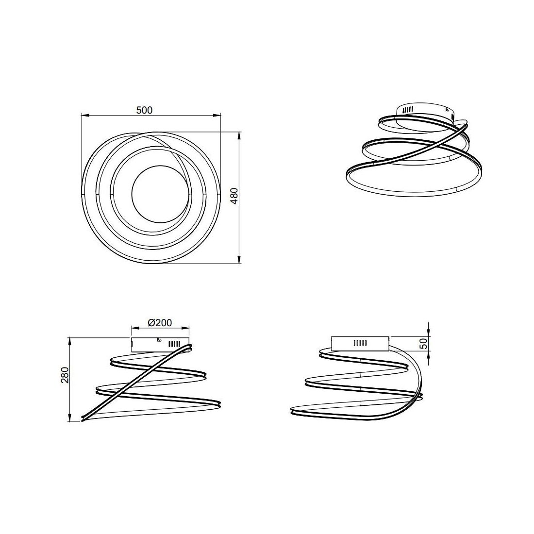 Plafoniera dallo stile moderno, con una linea sinuosa e affascinante, che si presenta con una struttura realizzata in metallo con finitura Bianca oppure Cromo (a vostra scelta) e con il diffusore avvolto e attorcigliato dove i circuiti Led percorrono tutta la linea sulla parte esterna per un emissione diffusa della luce.
