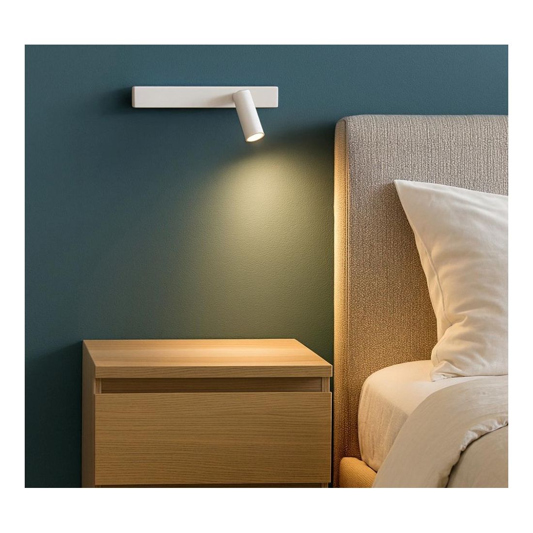 - uno spot da lettura orientabile, perfetto per chi ama leggere nelle ore serali. La sua progettazione ottica permette di concentrare il fascio luminoso sul libro, garantendo comfort visivo senza interferire con il riposo del partner.