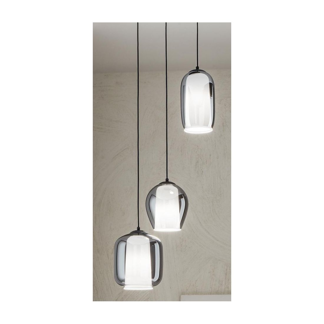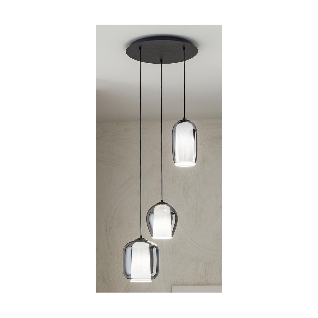 BONNIE SOSPENSIONE DECENTRATA CON 5 LUCI IN VETRO SOFFIATO FUME, AMBRA, VERDE E...