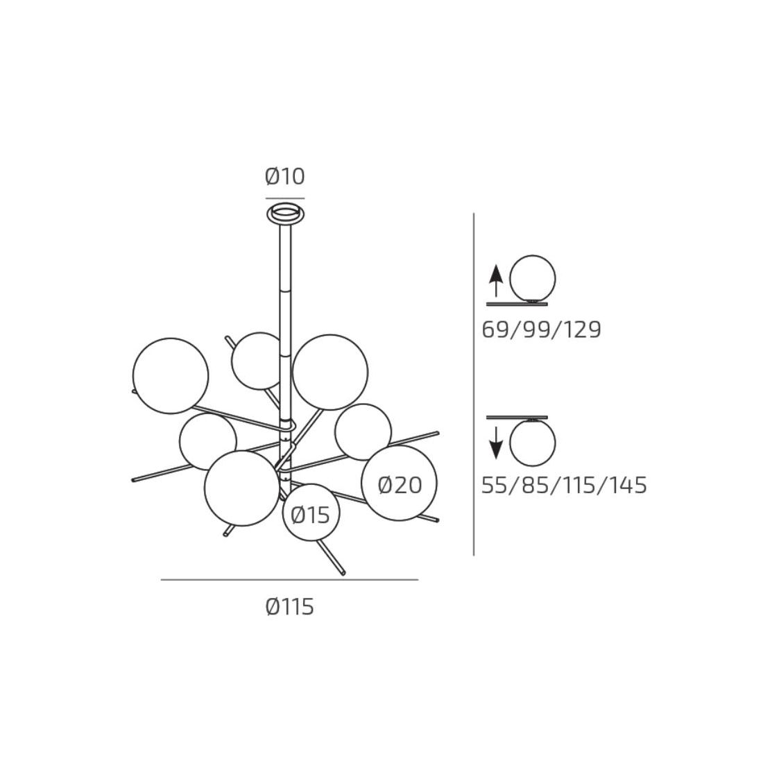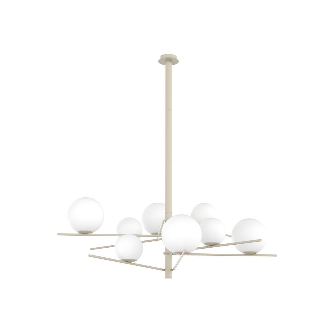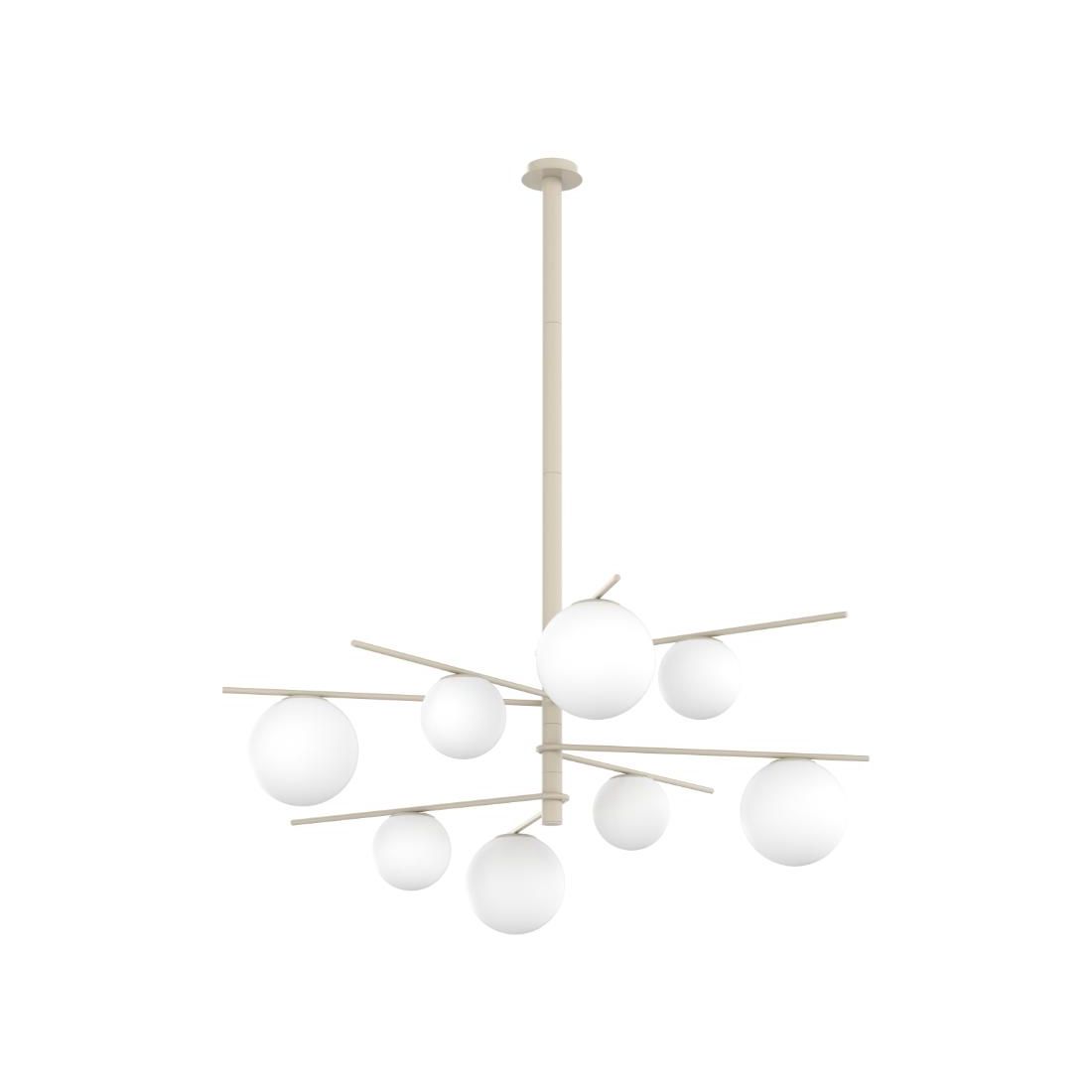 BOOMERANG SOSPENSIONE 6 LUCI IN METALLO SABBIA E DIFFUSORI IN VETRO BIANCO LAMPADINE...