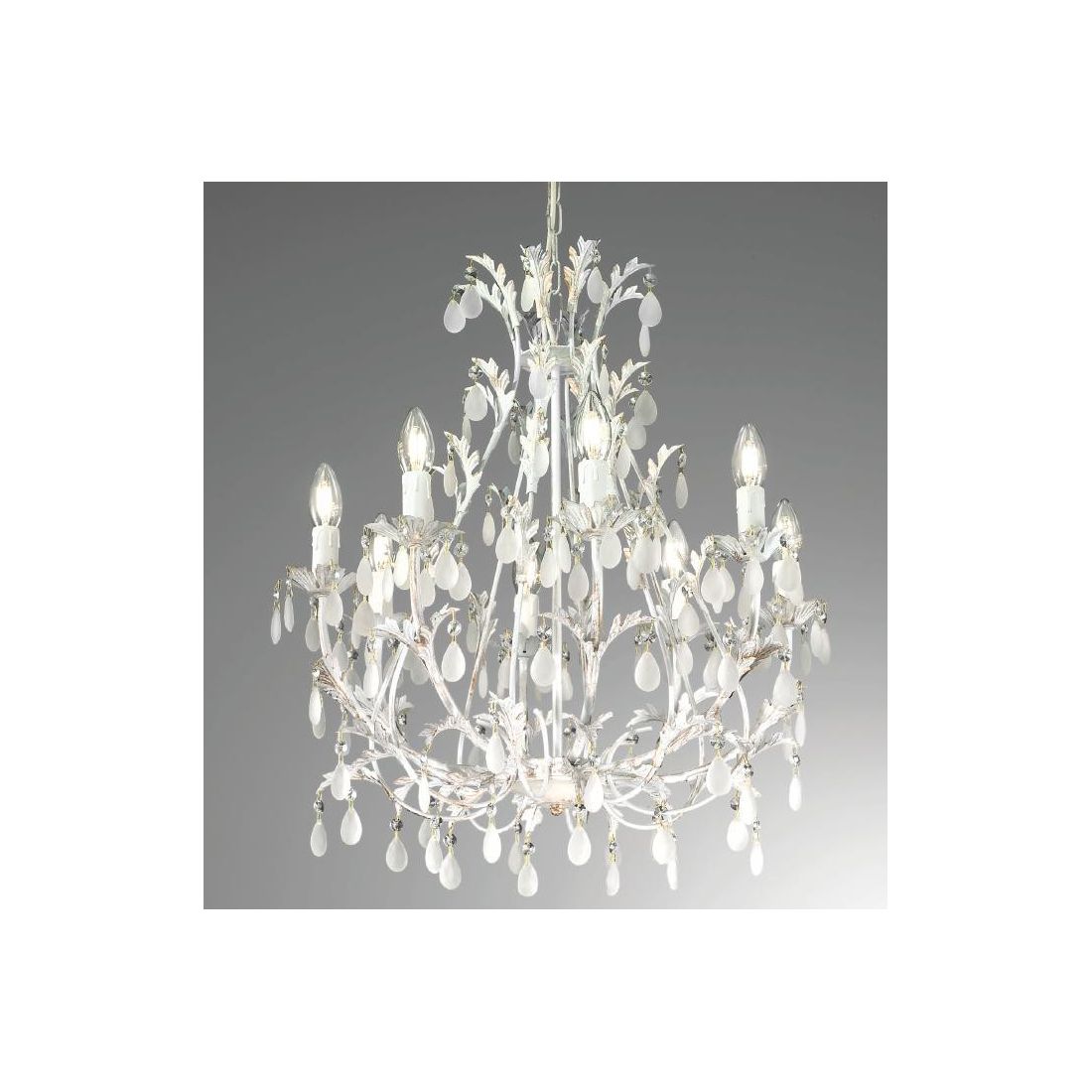 BOTTE GRANDE LAMPADARIO 10 LUCI CLASSICO BIANCO INVECCHIATO CON LAMPADINE A VISTA