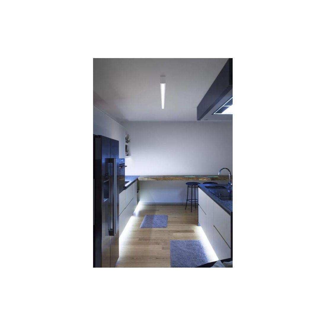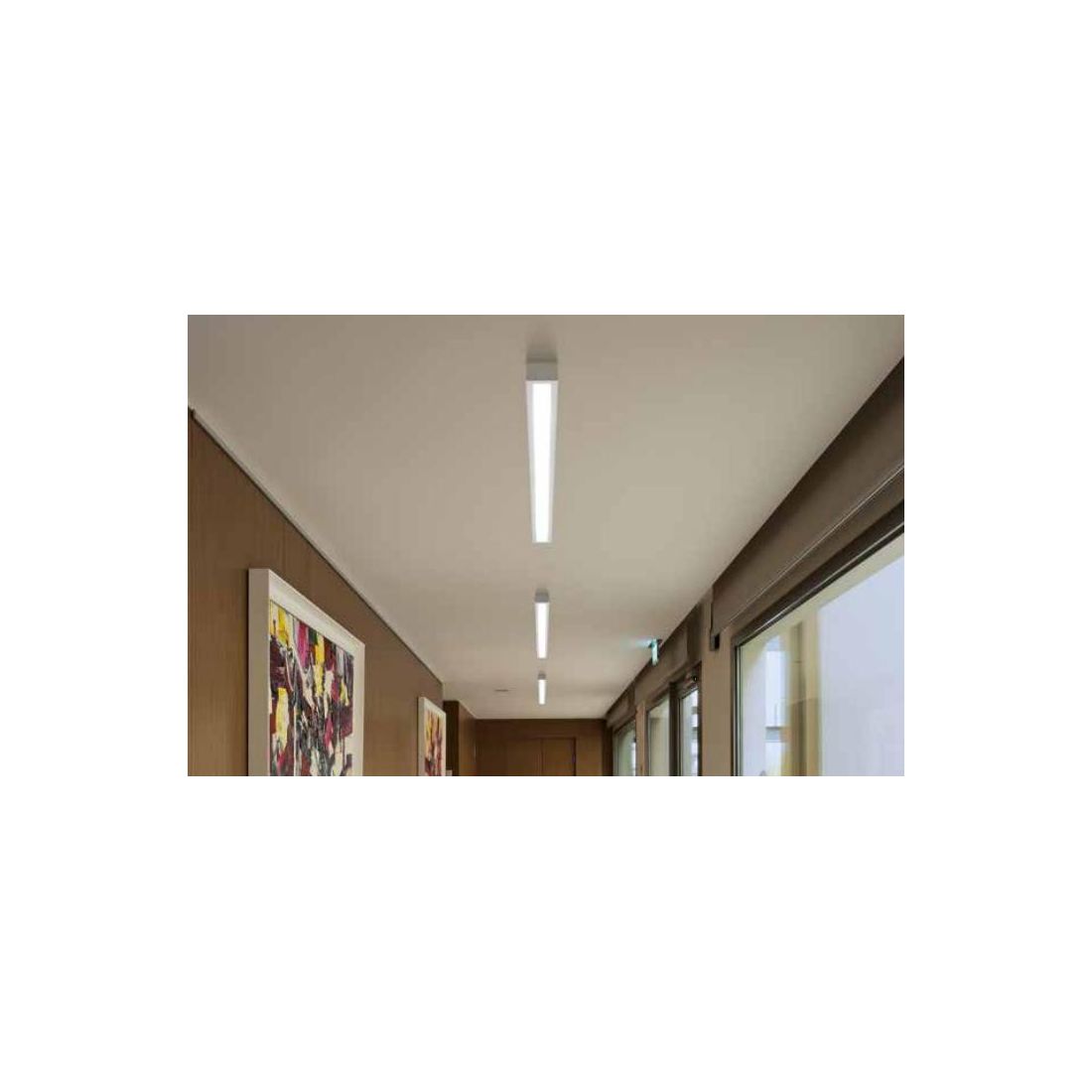 Lampada moderna, dal design semplice e lineare, che assicura un'illuminazione efficiente e diffusa in tutto l'ambiente e che risulta particolarmente adatta per la cucina, l'ingresso, il corridoio ma anche per una cabina armadio e per illuminare spazi commerciali come ristoranti, alberghi e bar.