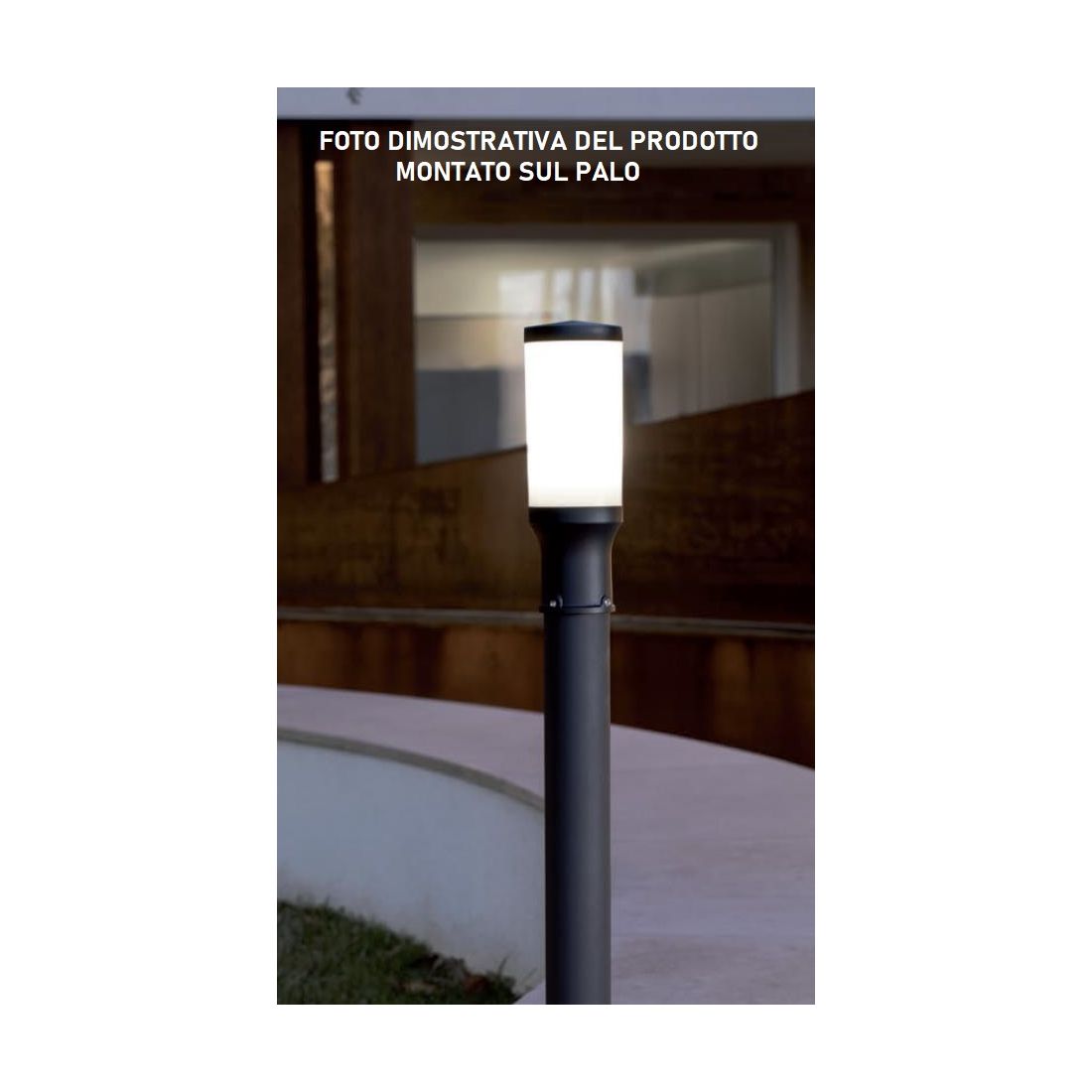L’apparecchio è completo di guarnizione siliconica tra base e diffusore per un efficace protezione contro la penetrazione dell’acqua e della polvere. La caratteristica importante di questo articolo è il diffusore con attacco a vite di grandi dimensioni che permette di utilizzare quasi tutti i diametri di lampade Led E27 in commercio. L’apparecchio è completo di adattatore per pali con diametro di 60 mm.