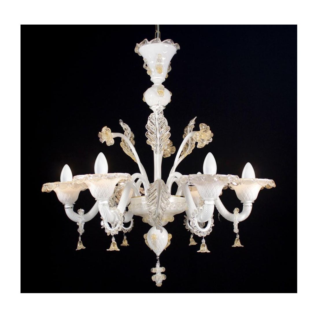 CANAL GRANDE LAMPADARIO 8 LUCI IN VETRO DI MURANO BIANCO LAVORATO A MANO FINITURE...