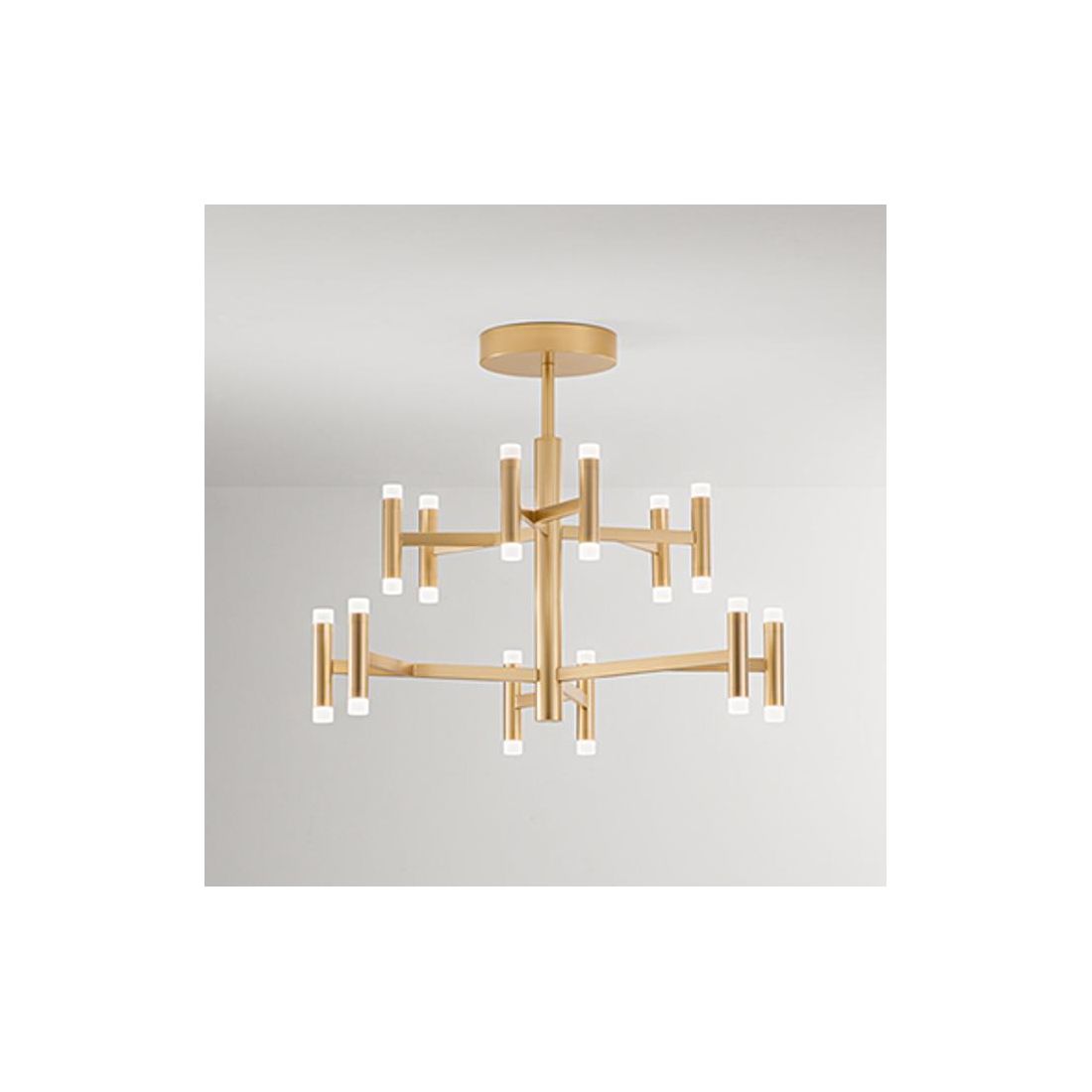 Plafoniera dal design moderno che si presenta con una struttura molto particolare realizzata in alluminio verniciato a polvere nel colore Oro spazzolato oppure Bianco opaco (a vostra scelta) con i diffusori in acrilico satinato che emanano la luce sia rivolta verso l'alto sia verso il basso.