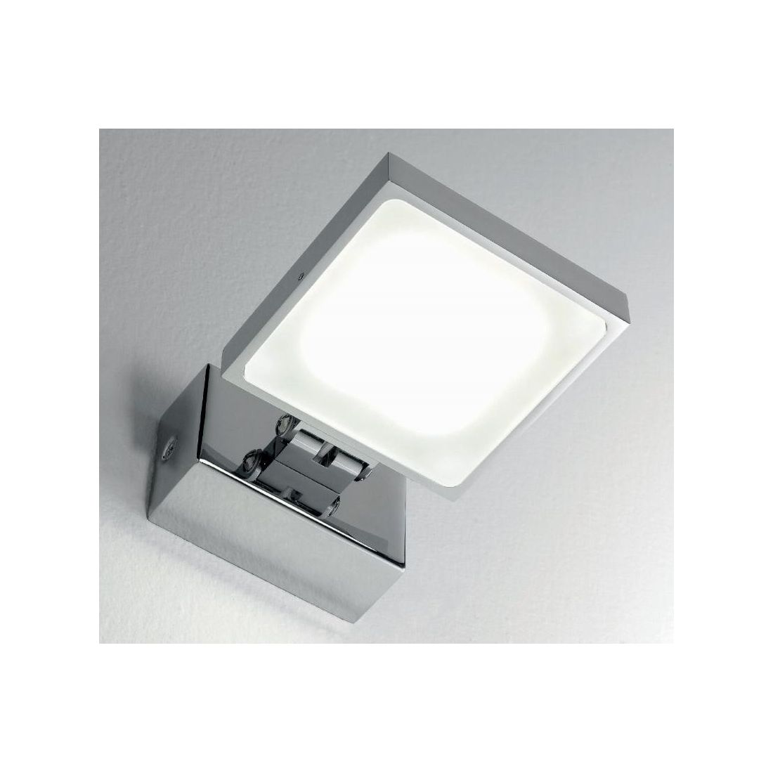 Lampada da parete dal design moderno realizzata in metallo con finitura Cromo con diffusore quadrato in plexiglass satinato dotato di snodo per poter orientare la luce nel punto in cui più vi necessita.