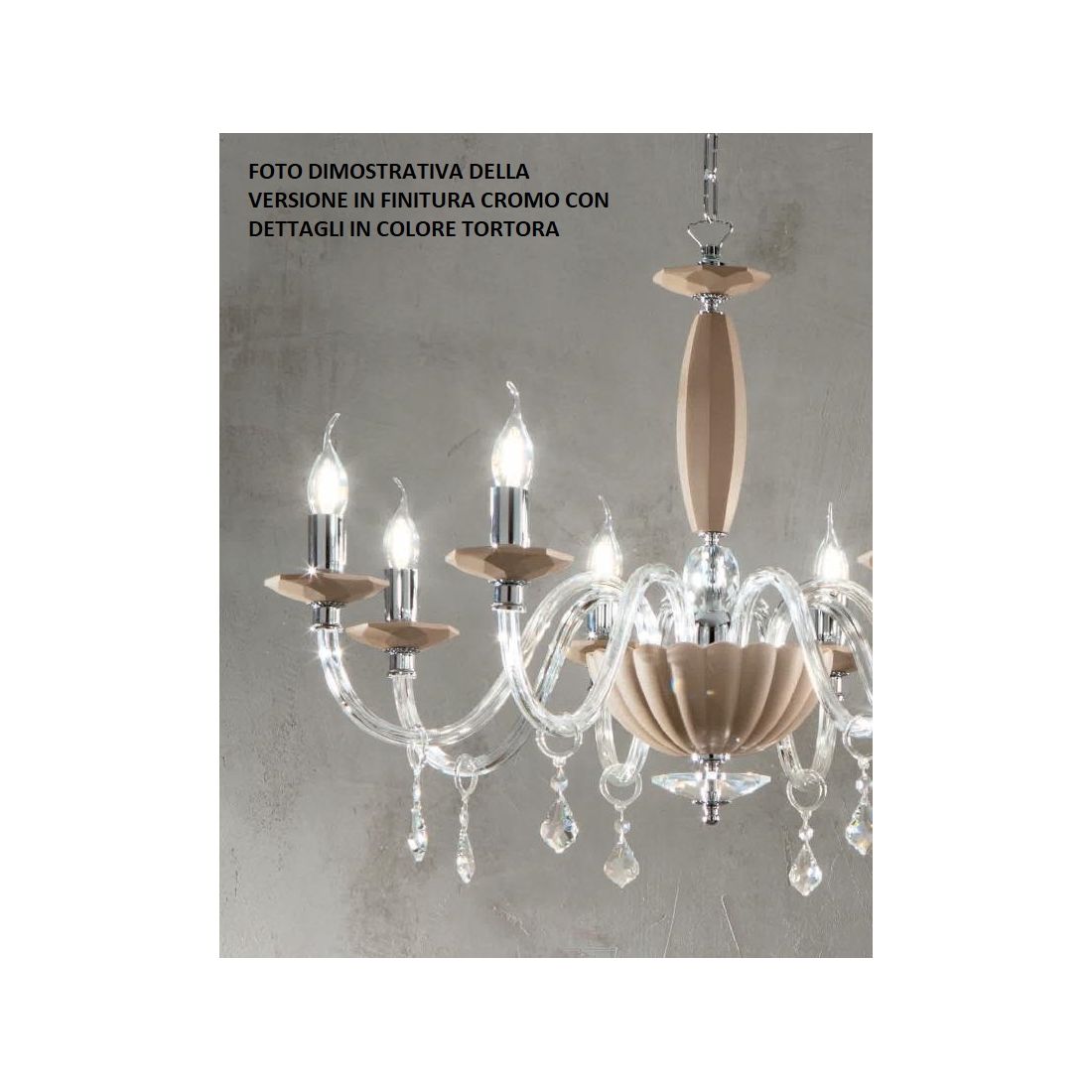 CECILIA 8 LUCI LAMPADARIO A SOSPENSIONE CLASSICO IN VETRO CON CRISTALLI 3 FINITURE
