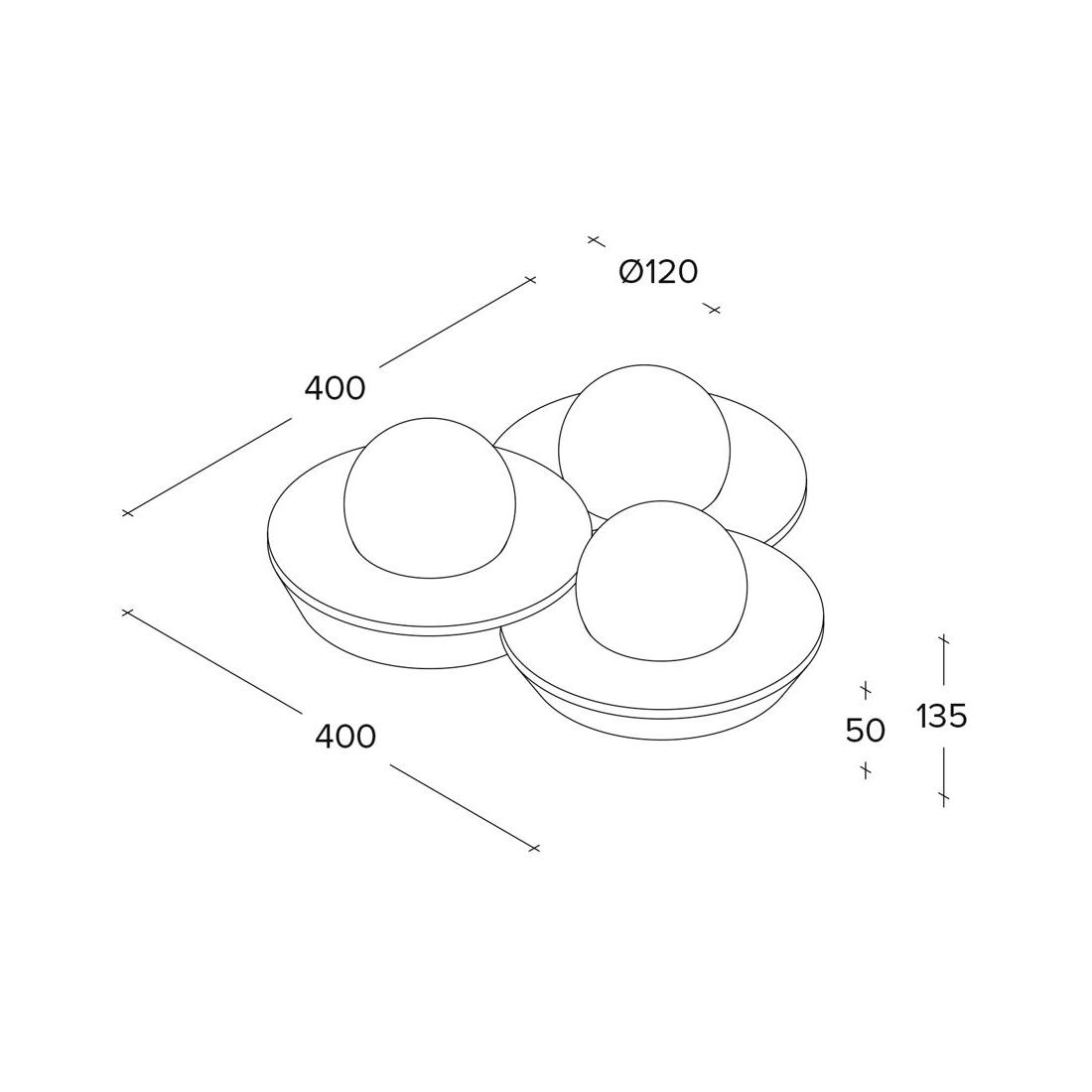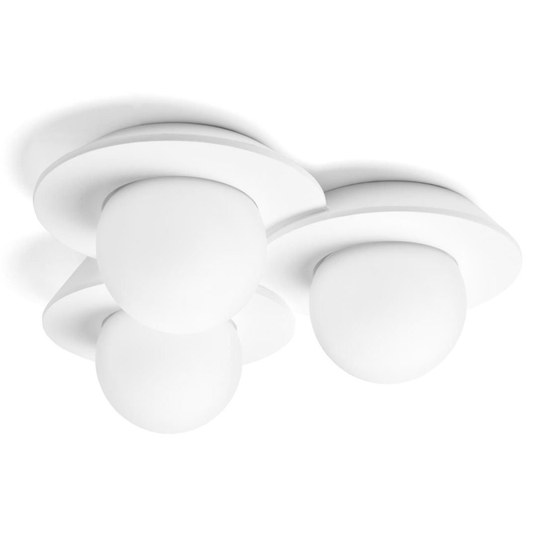 T389 PLAFONIERA 3 LUCI IN GESSO BIANCO VERNICIABILE DIFFUSORI IN VETRO LAMPADINE...