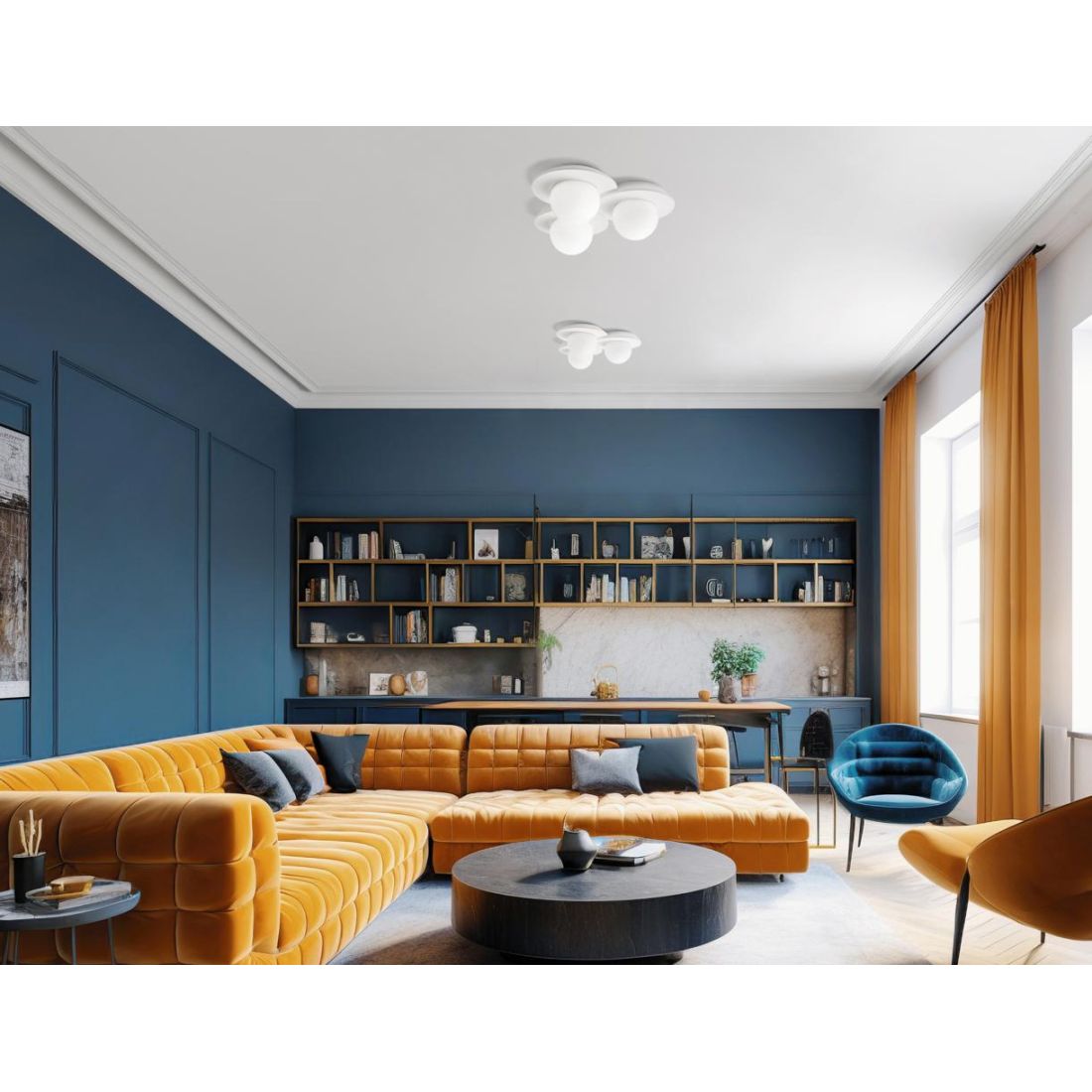 CICLADI PLAFONIERA 2 LUCI TONDEGGIANTE IN GESSO CON DIFFUSORI IN VETRO LAMPADINE...