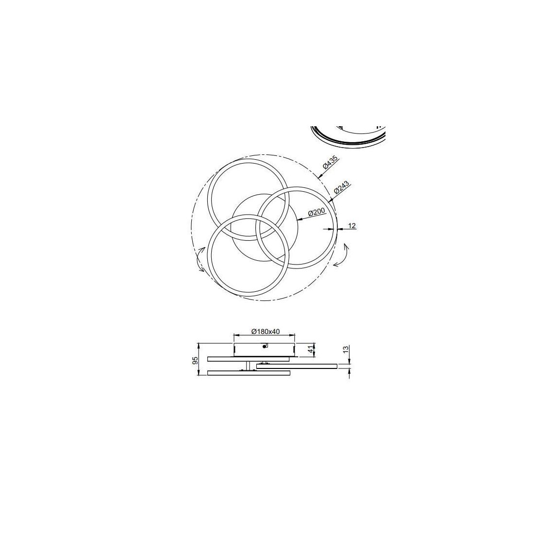 CIRCLE PLCIRCLE PLAFONIERA CON 3 CERCHI ORIENTABILI LED 27W DIMMERABILE 3 COLORI CON TELECOMANDO