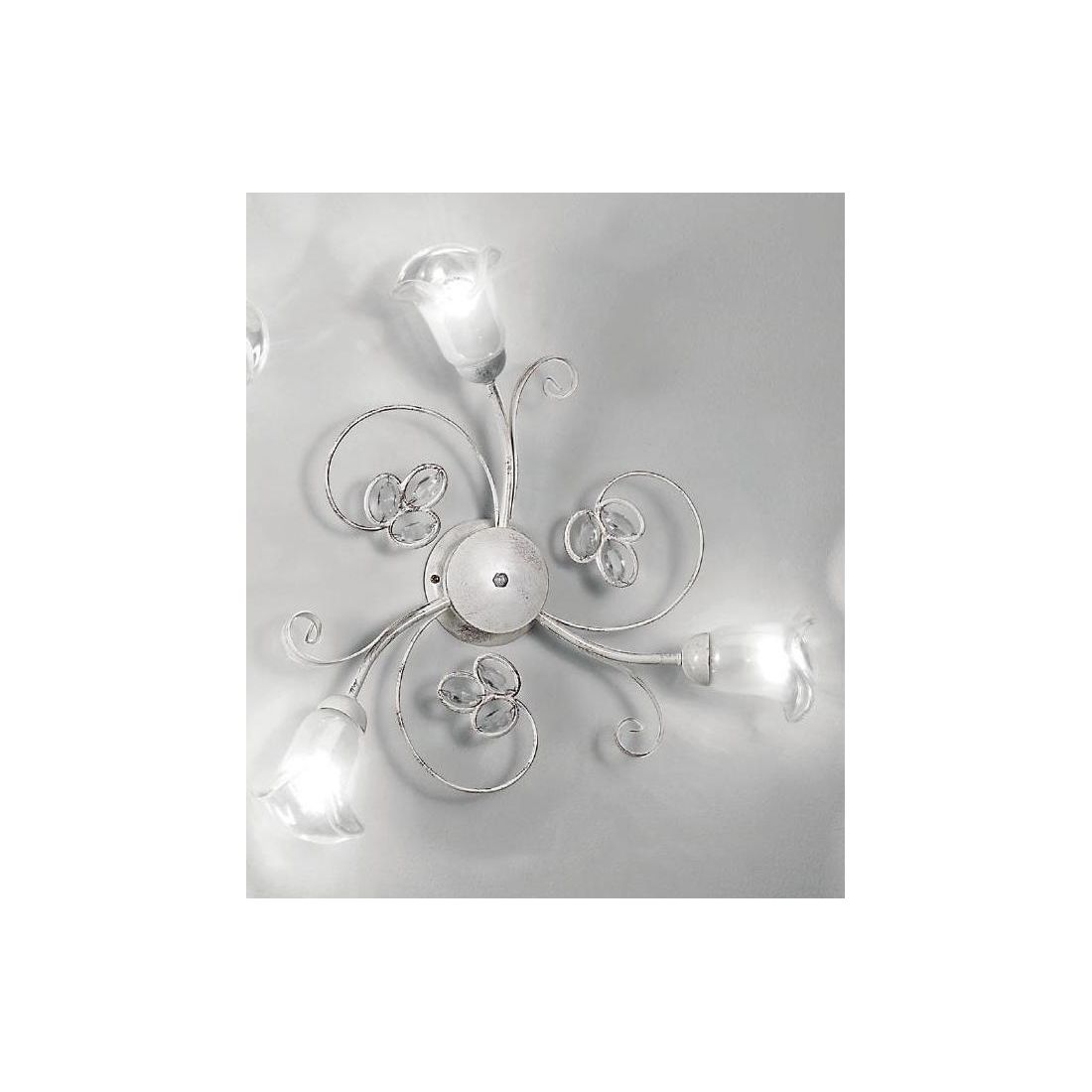 CLARISSA PLAFONIERA 4 LUCI CLASSICA BIANCO PATINATO RAME DIFFUSORI FLOREALI E DETTAGLI...