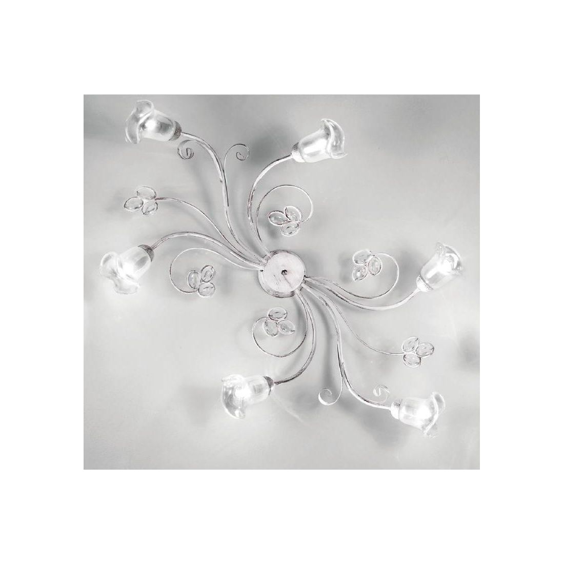 CLARISSA PLAFONIERA ROTONDA 5 LUCI BIANCO PATINATO RAME DIFFUSORI FLOREALI E DETTAGLI...
