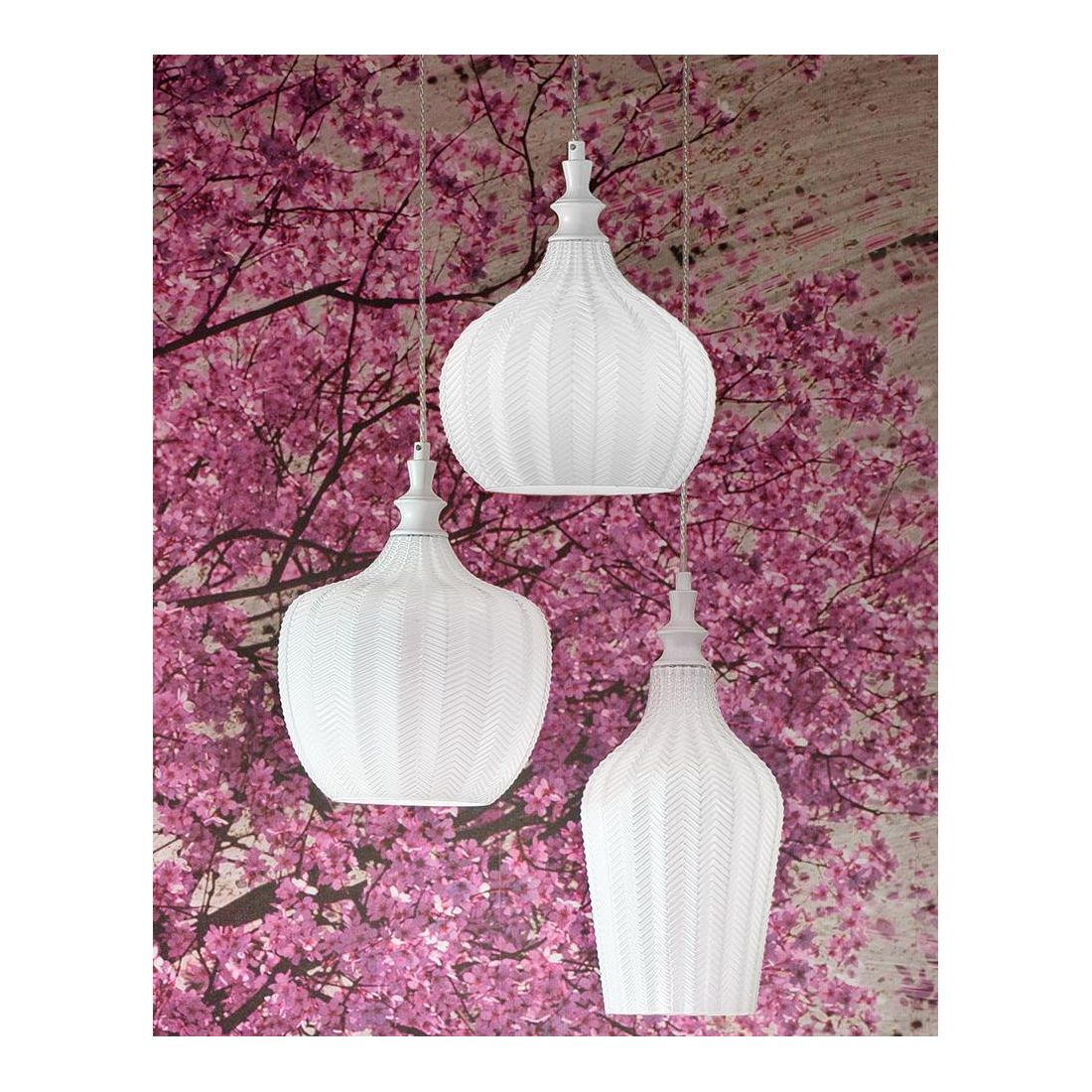 CLEOFE SOSPENSIONE IN VETRO COLORI BIANCO, COBALTO, AMBRA O OCRA CON DECORO A RILIEVO...