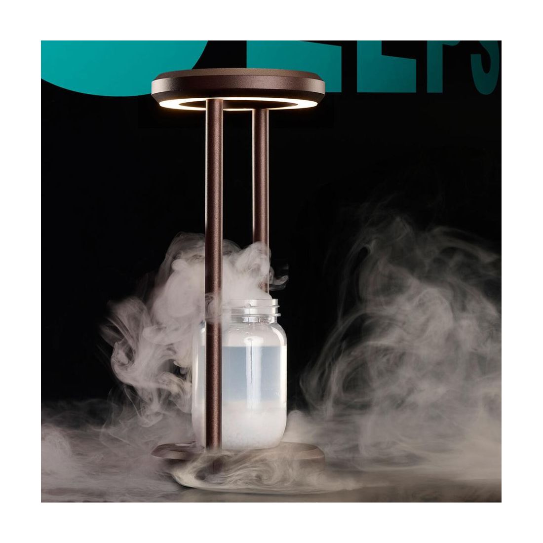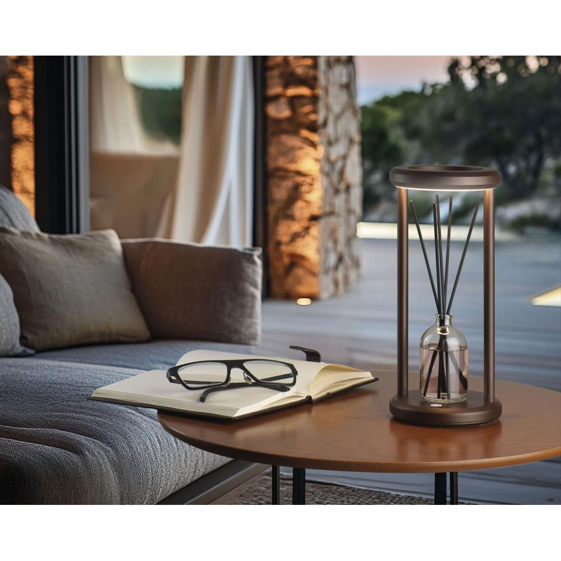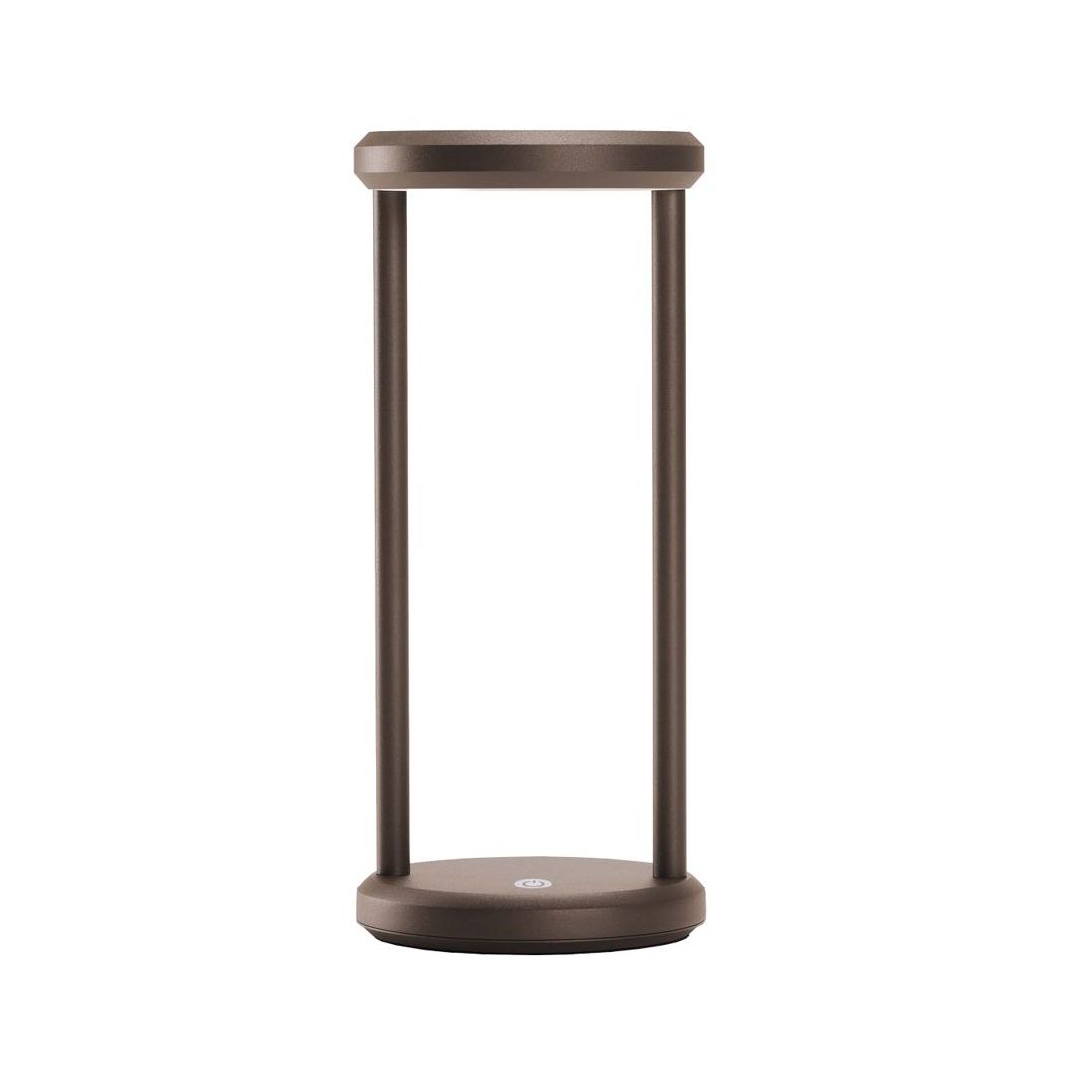 Lampada da tavolo ricaricabile e portabile, sia per uso interno sia per ambienti esterni, con un design moderno, con un altezza di cm 28, realizzata in metallo verniciato nei colori Bianco, Antracite, Oro rosato, Ruggine oppure Verde Salvia (a vostra scelta). La vera innovazione risiede nella sua struttura a "cornice", infatti, il vano centrale è stato progettato per accogliere e valorizzare piccoli oggetti personali. Che si tratti di una pianta ornamentale, un diffusore di essenze, un set sale e pepe o un accessorio per l'ufficio, Clepsy trasforma ogni elemento in un punto focale luminoso massimizzando l'ordine e lo stile del piano d'appoggio.
