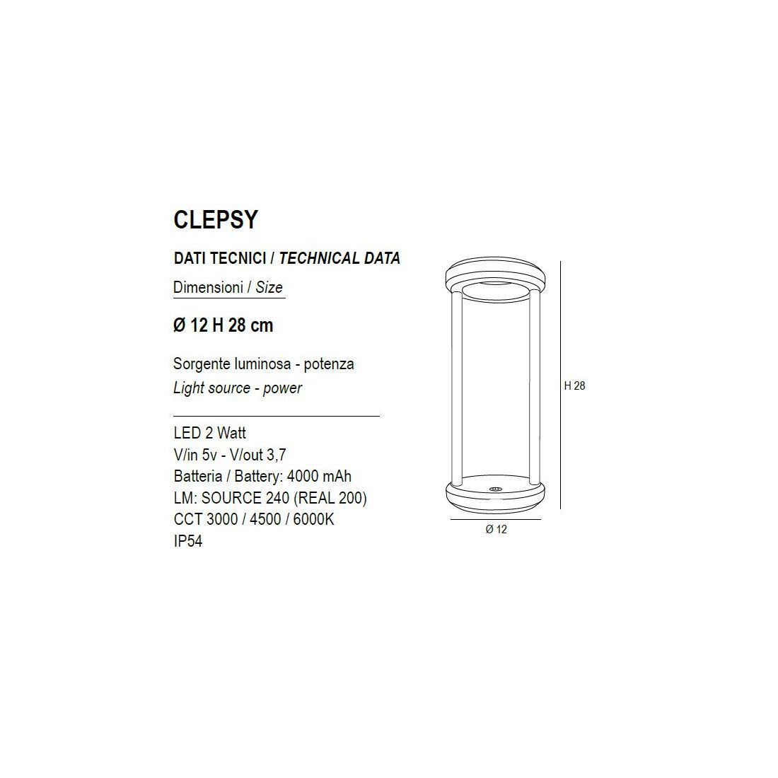 CLEPSYCLEPSY LAMPADA DA TAVOLO CON BATTERIA RICARICABILE IP54 TOUCH DIMMER LED 2W DIMMERABILE 5 COLORI
