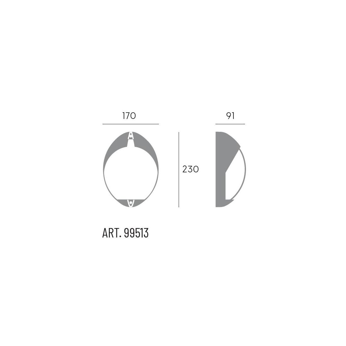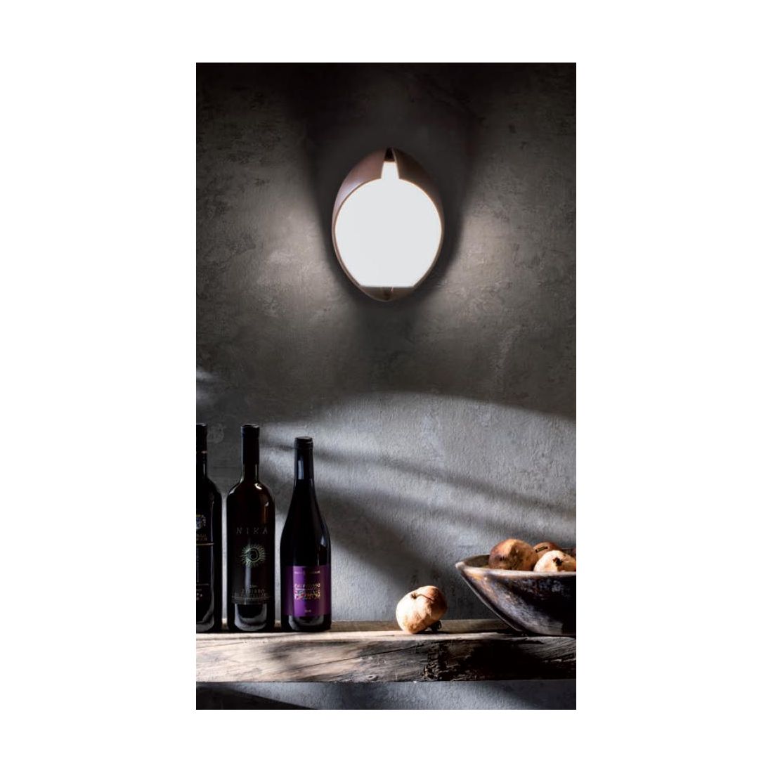 Applique dal design moderno, con una forma ovale, che viene realizzata in alluminio pressofuso di alta qualità verniciato nei colori Corten oppure Bianco (a vostra scelta) e con il diffusore in materiale termoplastico ad elevata trasmittanza luminosa di colore ghiaccio satinato.