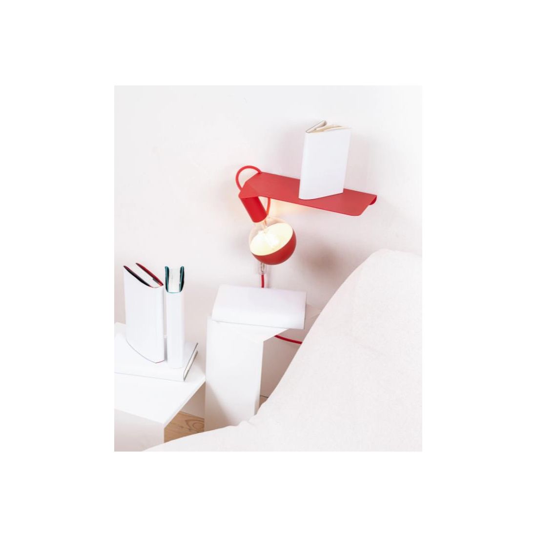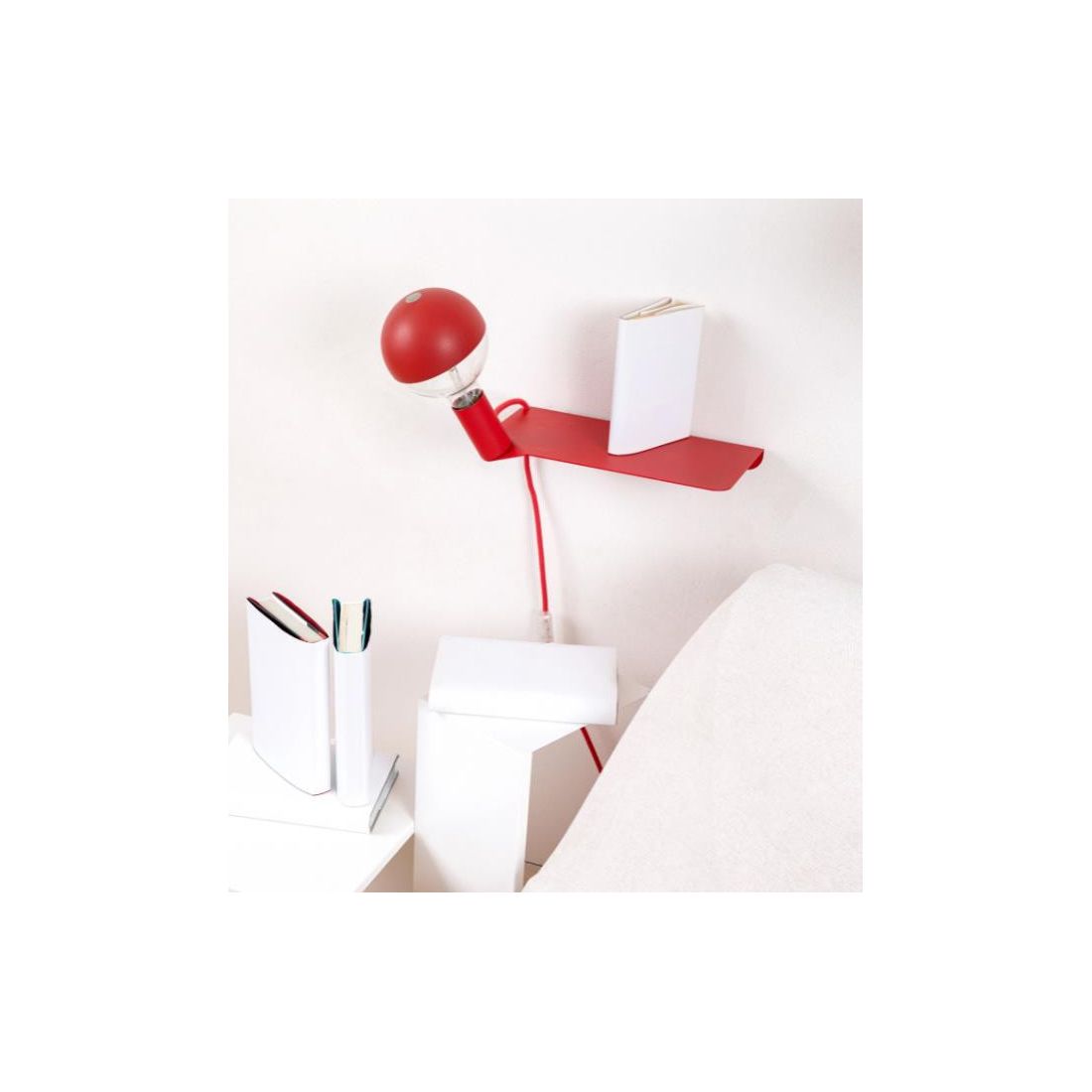 In questo connubio la mensola solitaria incontra il portalampada e il magnetismo fa scattare la scintilla dando alla luce un amore libero da vincoli meccanici.