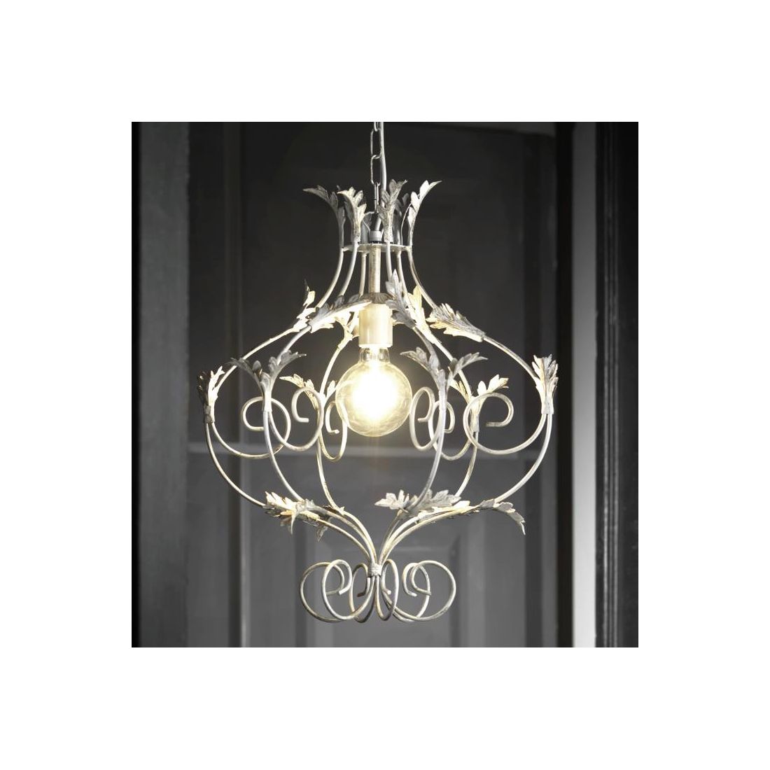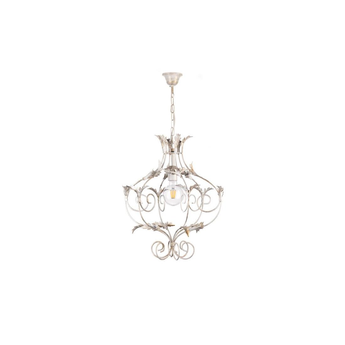 Sospensione singola dallo stile classico composta da una struttura totalmente realizzata in metallo verniciato nel colore Avorio oppure Bronzo (a vostra scelta) che risulta molto elegante perchè impreziosito da foglioline decorative in metallo.