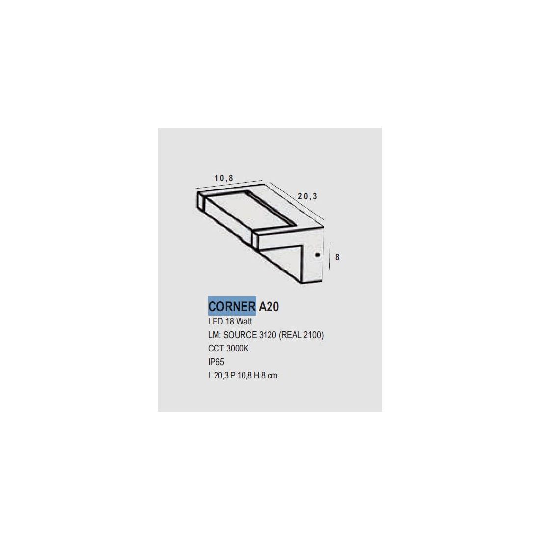 CORNER A20CORNER APPLIQUE ORIENTABILE DA ESTERNI IP65 IN ALLUMINIO BIANCO O NERO LED 18W LUCE 3000K MODERNA