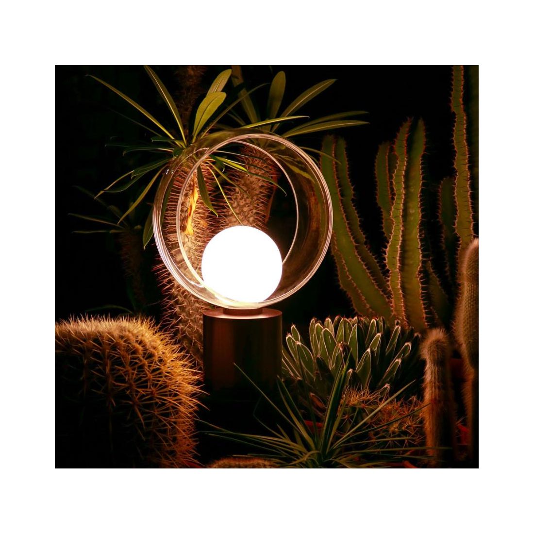 Una lampada da tavolo dal design originale dove la lampadina messa in evidenza illumina con semplicità e gusto; può essere collocata sopra il comodino della camera da letto, sulle scrivanie o tavolini in salotto o in ufficio oppure sopra i tavoli di un bar/ristorante, pub o alberghi senza limiti alla fantasia.