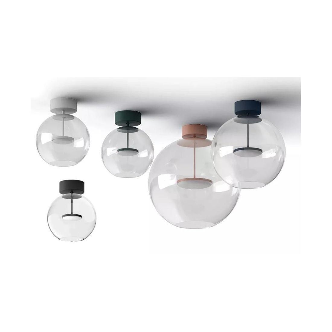 CRISTALBOLLA PLAFONIERA D34 CM VETRO TRASPARENTE E ALLUMINIO 5 COLORI LED 19W LUCE...