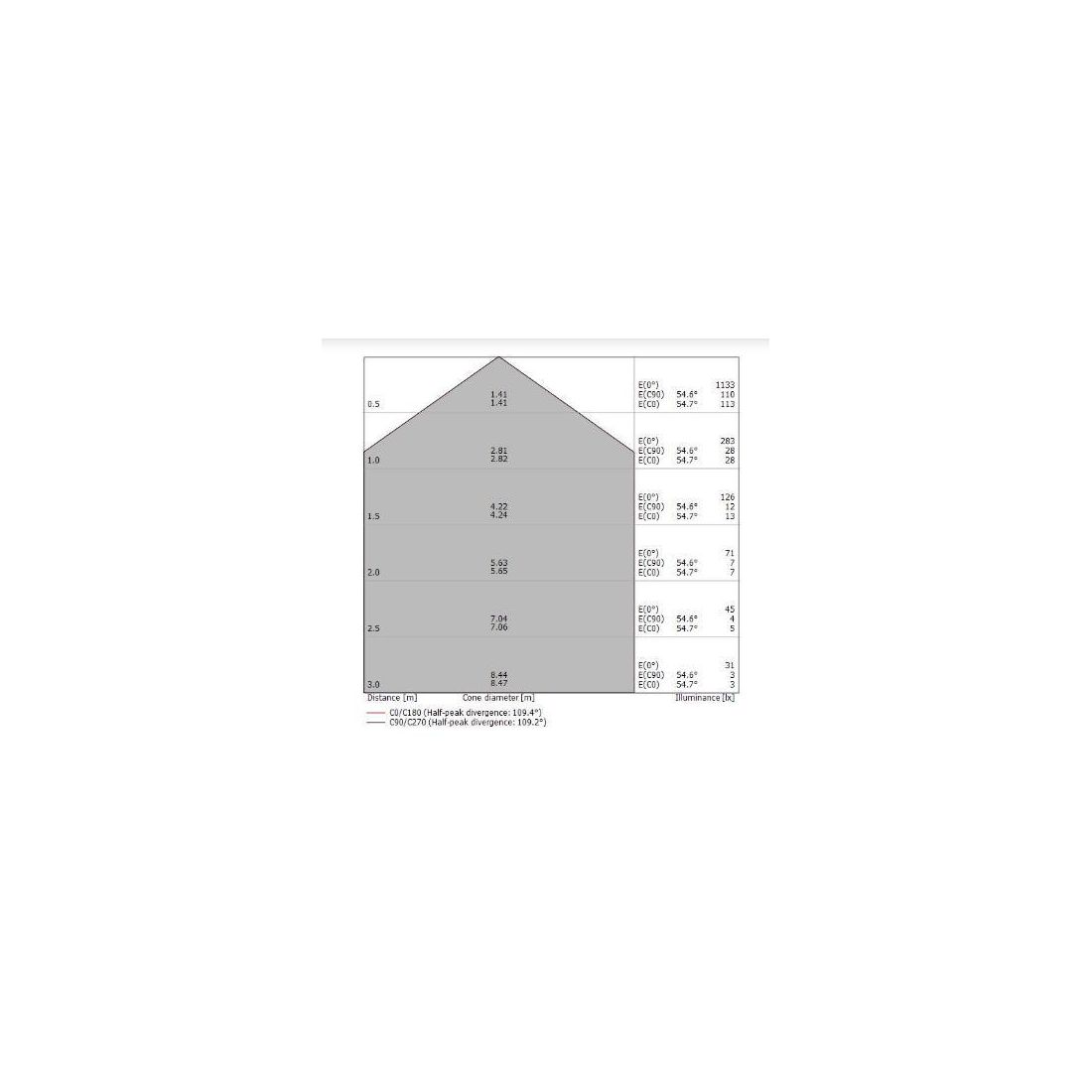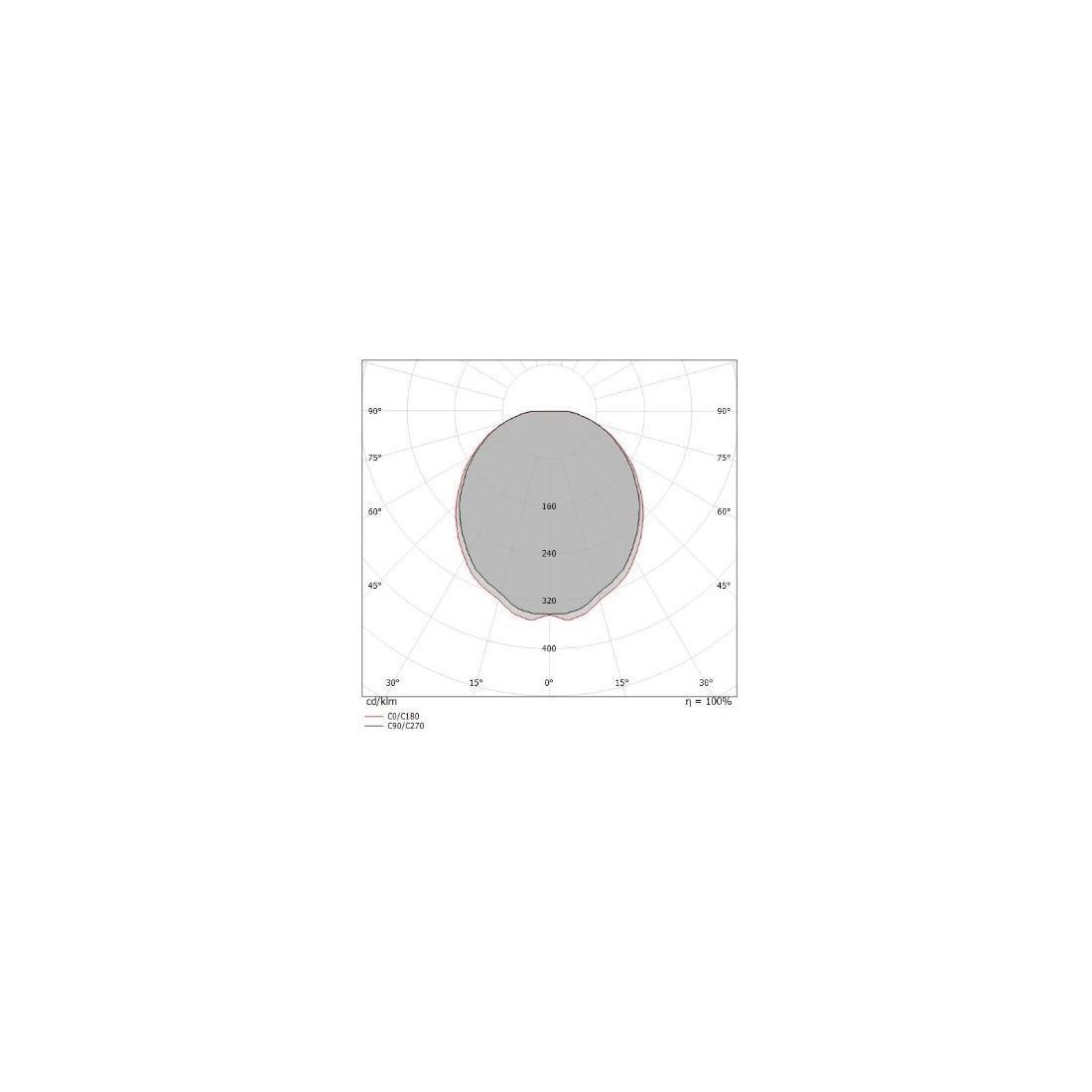 Plafoniera con la sorgente luminosa LED da 15w, di colore bianco caldo, con distribuzione luminosa General Lighting, è composta da 36 LED topled, con una CCT 3000K ed un CRI 80; il flusso luminoso della sorgente è di 1622 lm, con un'efficienza nominale di 110.2 lm/W; il grado di protezione è IP40, il peso complessivo è di 1.160 kg con una classe di isolamento I, installabile solo a soffitto.
