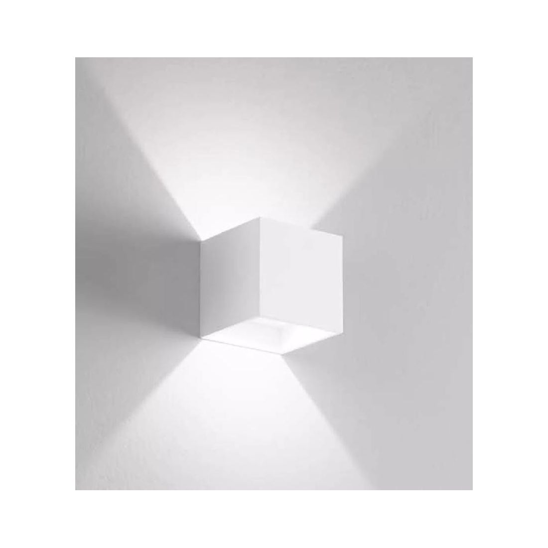 Cubo lampada da parete applique in alluminio verniciato di bianco opaco oppure Nero con luce led integrata da 10w cob led epistar luce calda 3000k 800 lumen CRI80 ra classe energetica A. Un cubo di piccole dimensioni 10x10x10,5 cm dal design moderno che crea due coni di luce uno verso l'alto e uno verso il basso, per un illuminazione suggestiva sulla parete.
