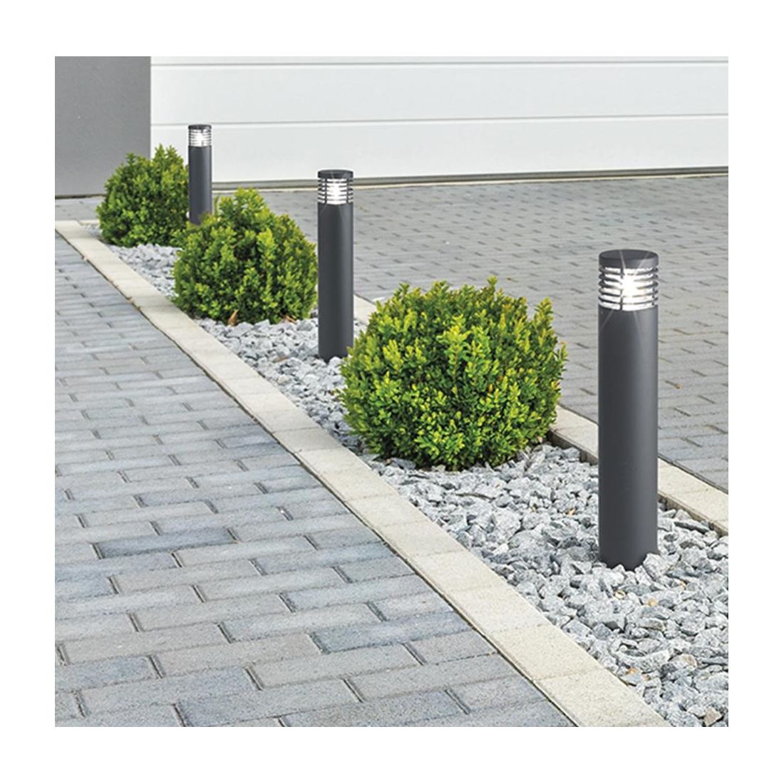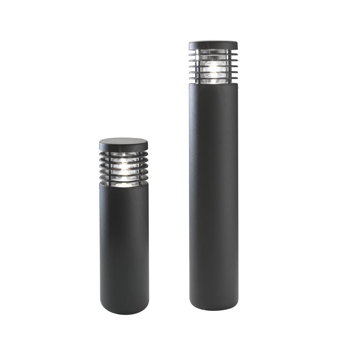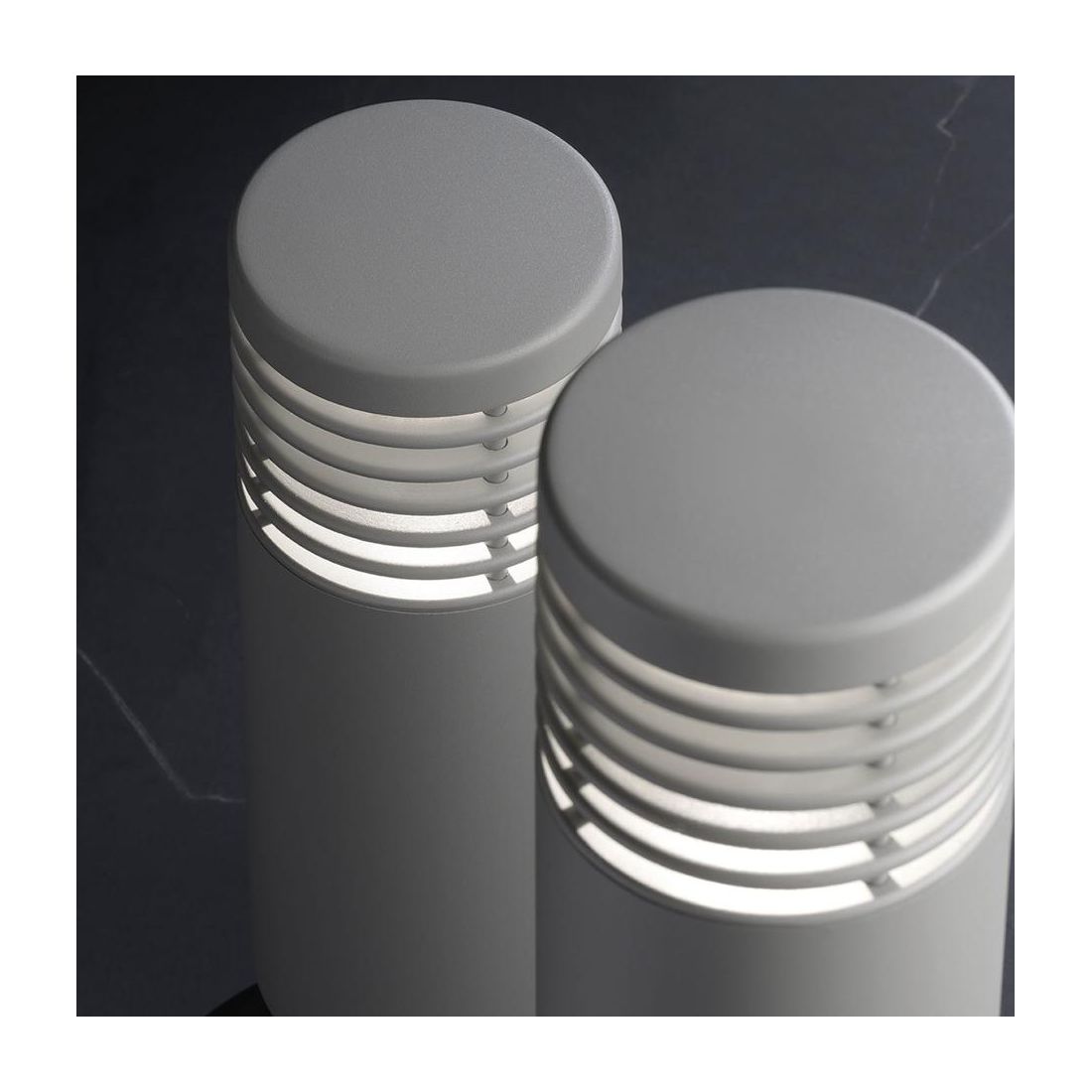 Paletto da esterno, dalla forma tubolare, disponibile con un altezza di cm 35 oppure con altezza di cm 65, realizzato in alluminio pressofuso verniciato nel colore Antracite oppure Grigio Perla (a vostra scelta), con una linea moderna che dona luminosità ed eleganza ai vostri ambienti esterni.