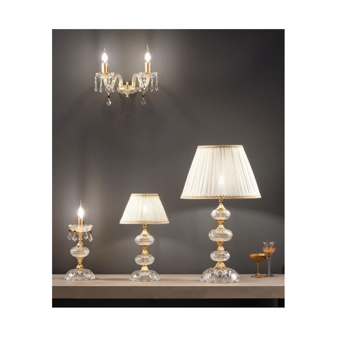 DALLAS LAMPADA PICCOLA ORO O CROMO CON PENDAGLIERIA IN CRISTALLO E PARALUME IN TESSUTO