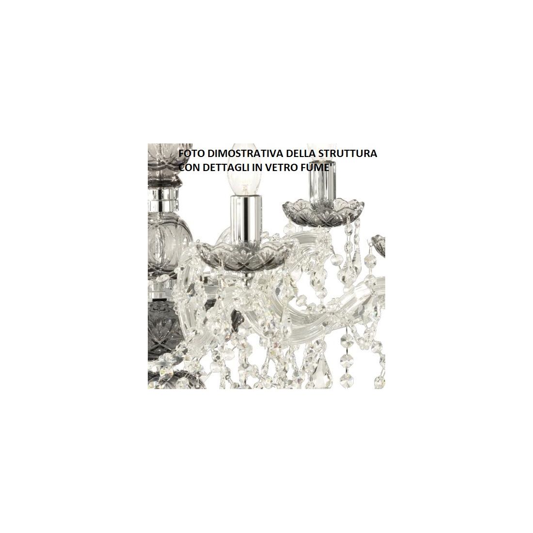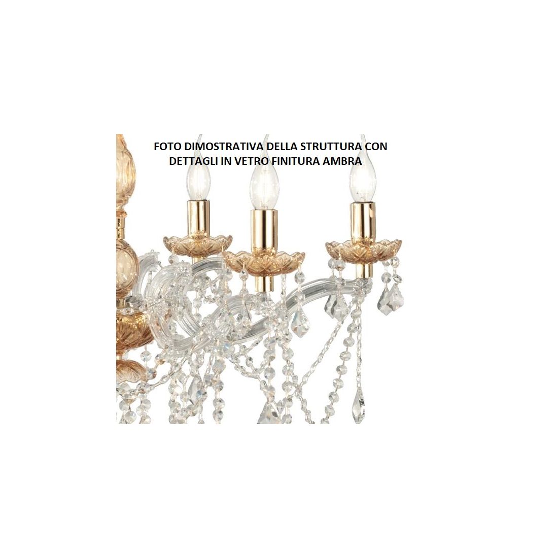 DAMASCO LAMPADARIO CLASSICO 12 LUCI BRACCI IN VETRO TRASPARENTE CON DECORI IN CRISTALLO...