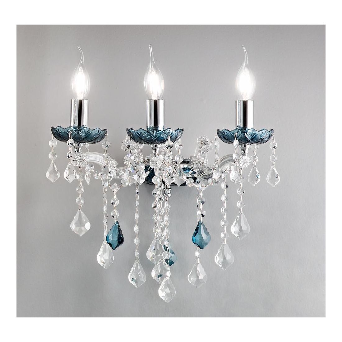 DAMASCO APPLIQUE CLASSICA 2 LUCI BRACCI IN VETRO TRASPARENTE CON DECORI IN CRISTALLO...