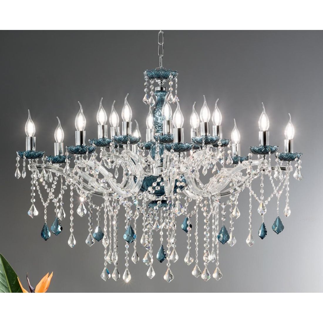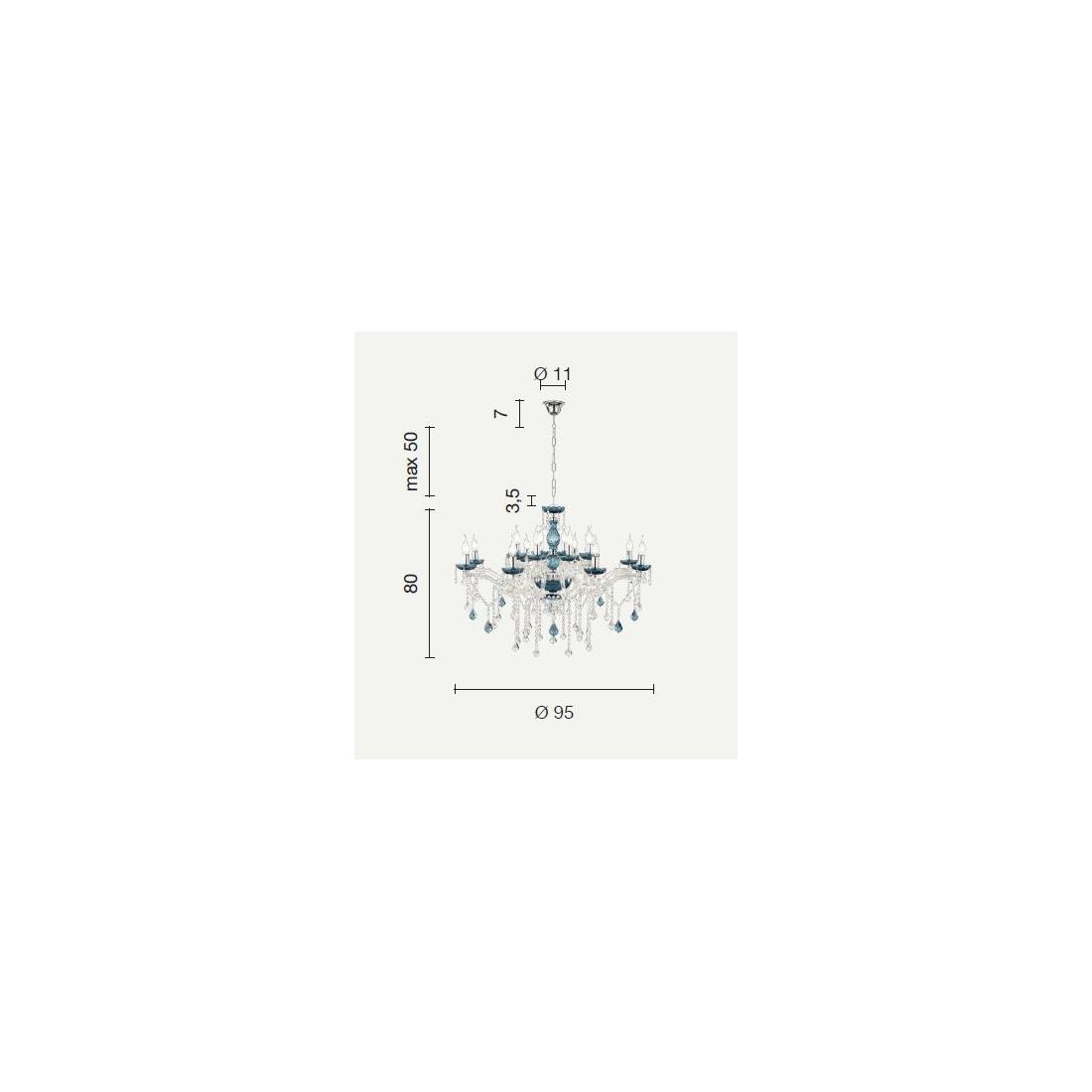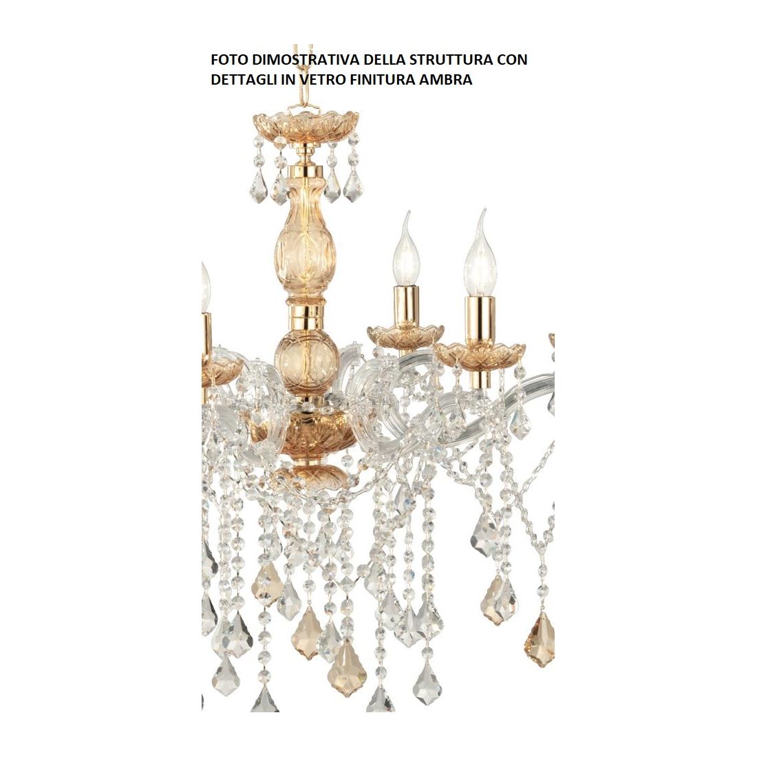 DAMASCO LAMPADARIO CLASSICO 8 LUCI BRACCI IN VETRO CON DECORI IN CRISTALLO 4 COLORI...