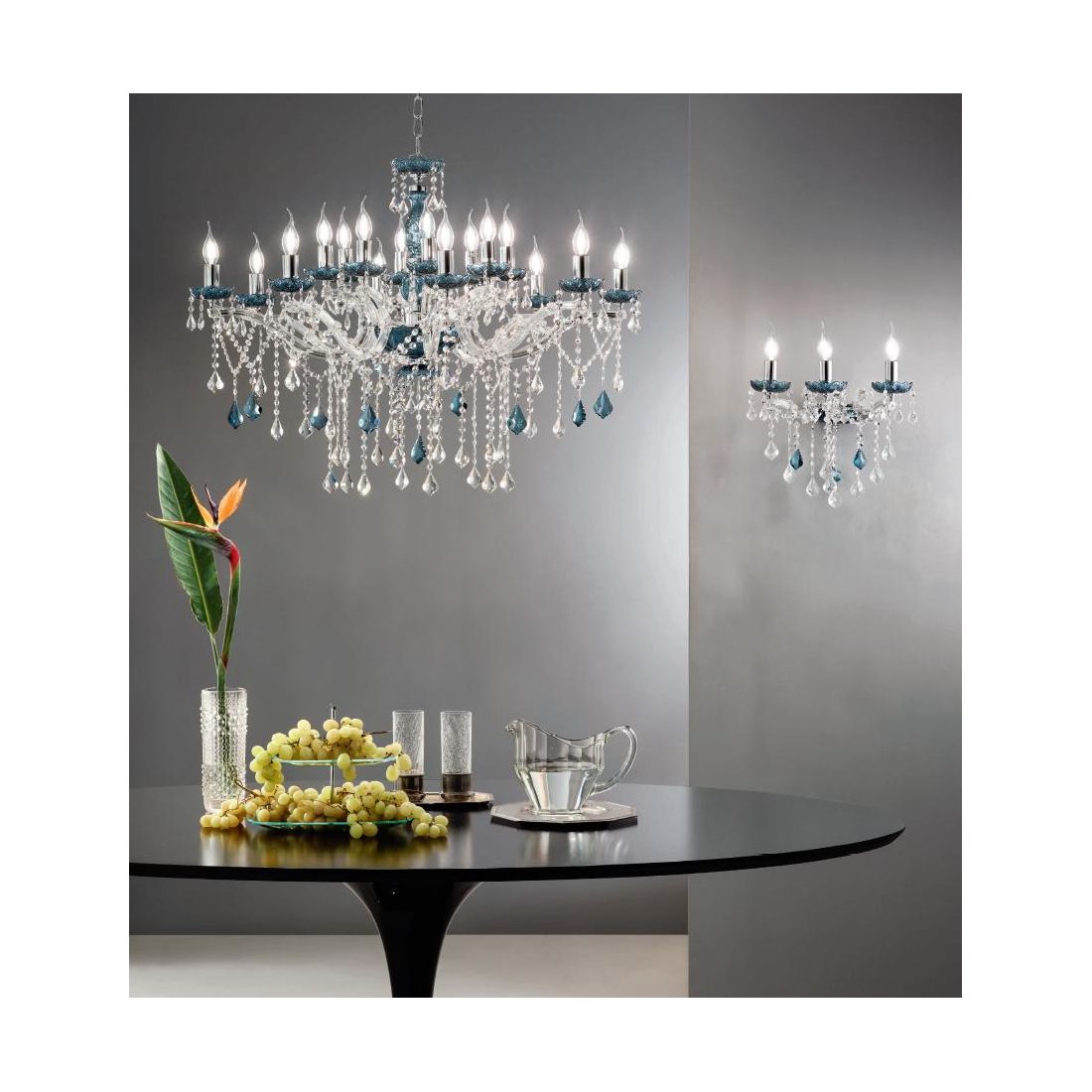 DAMASCO APPLIQUE CLASSICA 3 LUCI BRACCI IN VETRO CON DECORI IN CRISTALLO 4 COLORI...