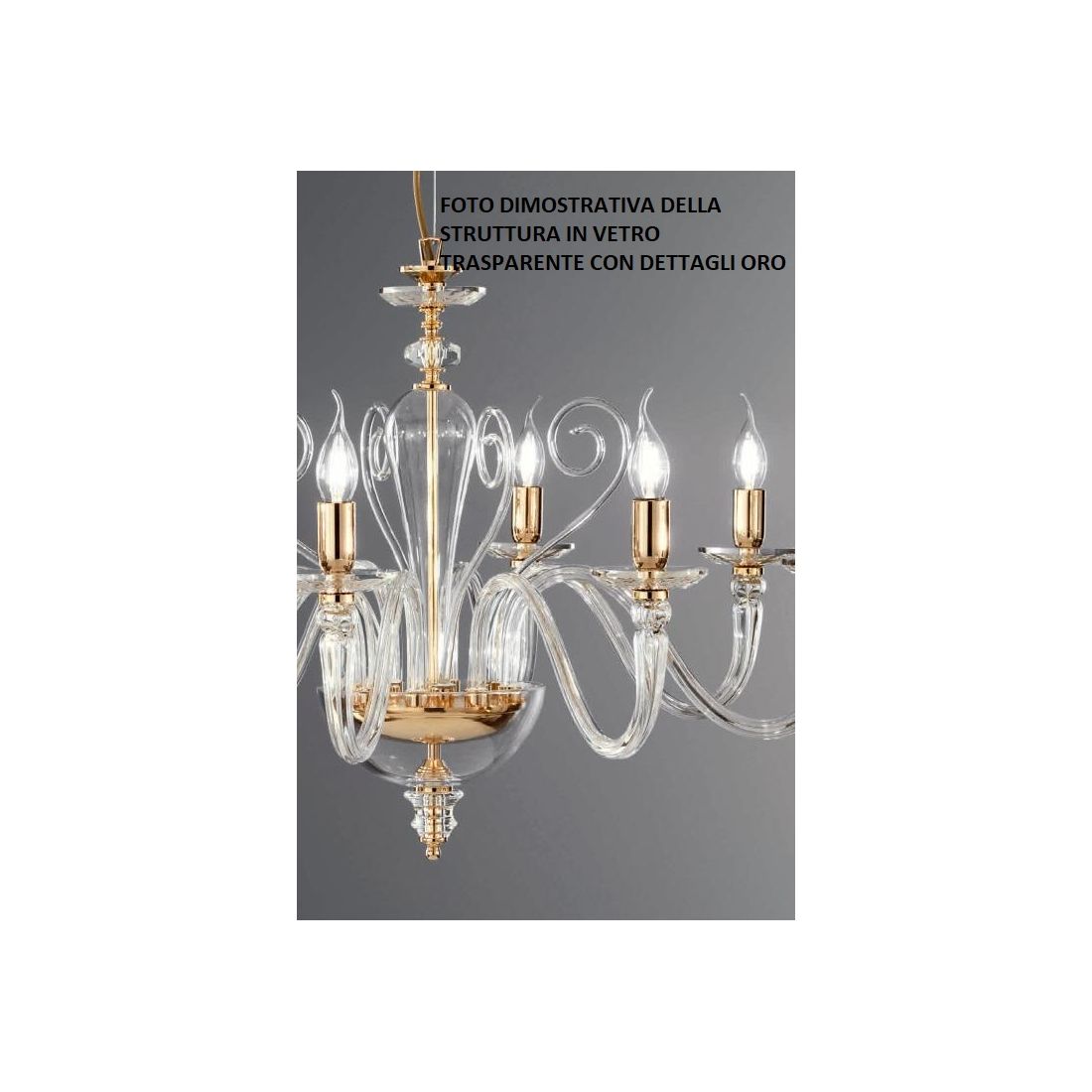 DEBUSSY 8 LUCI LAMPADARIO CLASSICO IN VETRO SOFFIATO 5 COLORI E CRISTALLO DI ONDALUCE