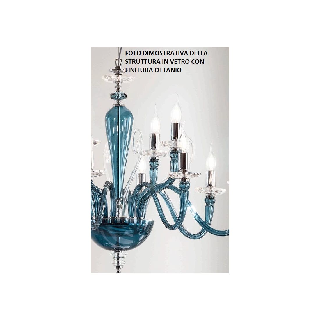 DEBUSSY 8 LUCI LAMPADARIO CLASSICO IN VETRO SOFFIATO 5 COLORI E CRISTALLO DI ONDALUCE