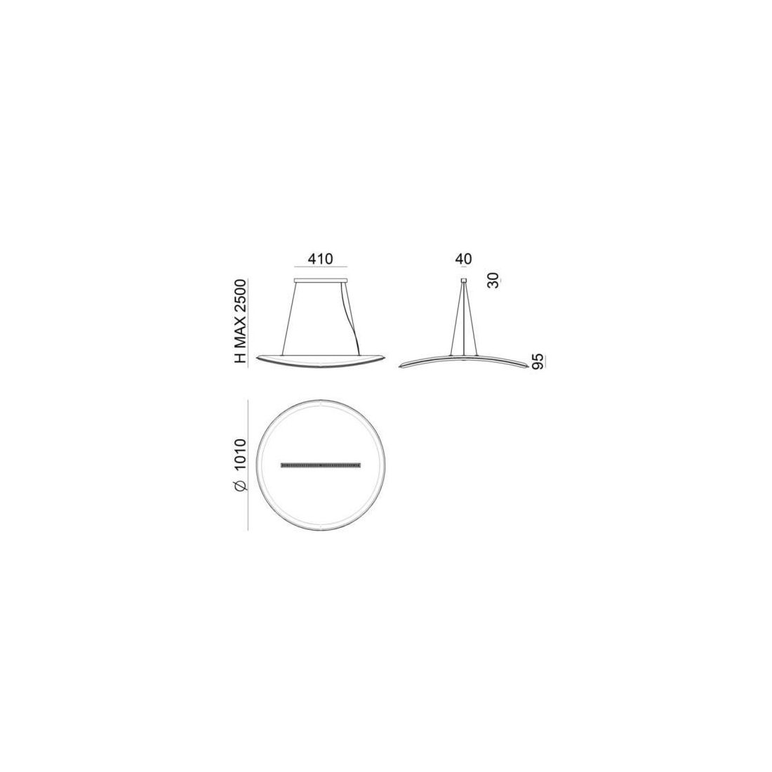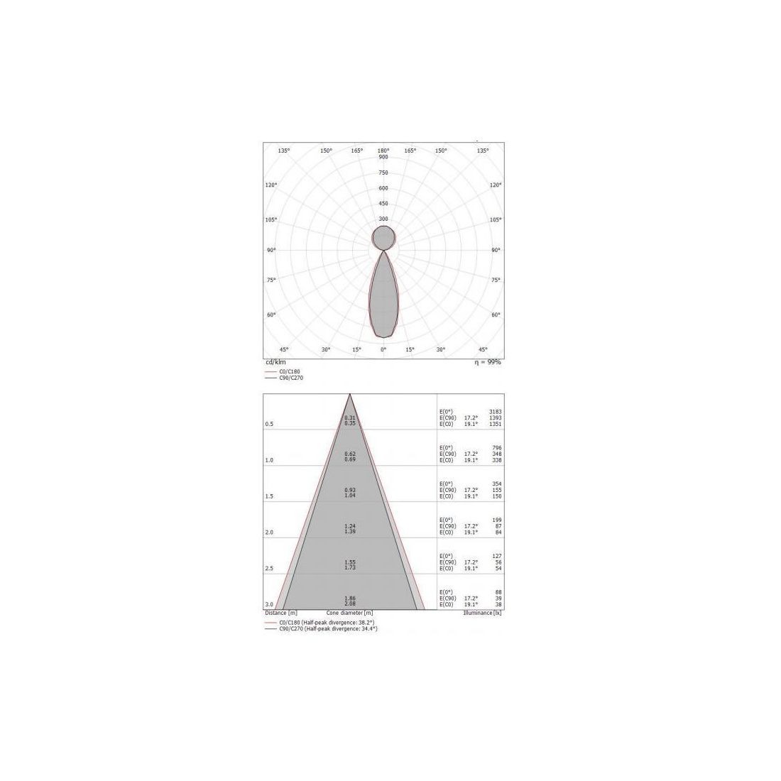 Lampadario con luce Dimmerabile DALI la cui sorgente luminosa, posta sulla parte superiore dell'apparecchio, ha un LED da 7w , di colore bianco caldo, con distribuzione luminosa Medium Flood, è composta da 36 LED topled, con una CCT 3000 K ed un CRI 90; il flusso luminoso della sorgente è di 880 lm, con un'efficienza nominale di 125.7 lm/W. La sorgente luminosa, con luce diretta verso il basso, invece, ha un LED da 14w, di colore bianco caldo, con distribuzione luminosa General Lighting, è composta da 60 LED topled, con una CCT 3000 K ed un CRI 90; il flusso luminoso della sorgente è di 1733 lm, con un'efficienza nominale di 123.8 lm/W.