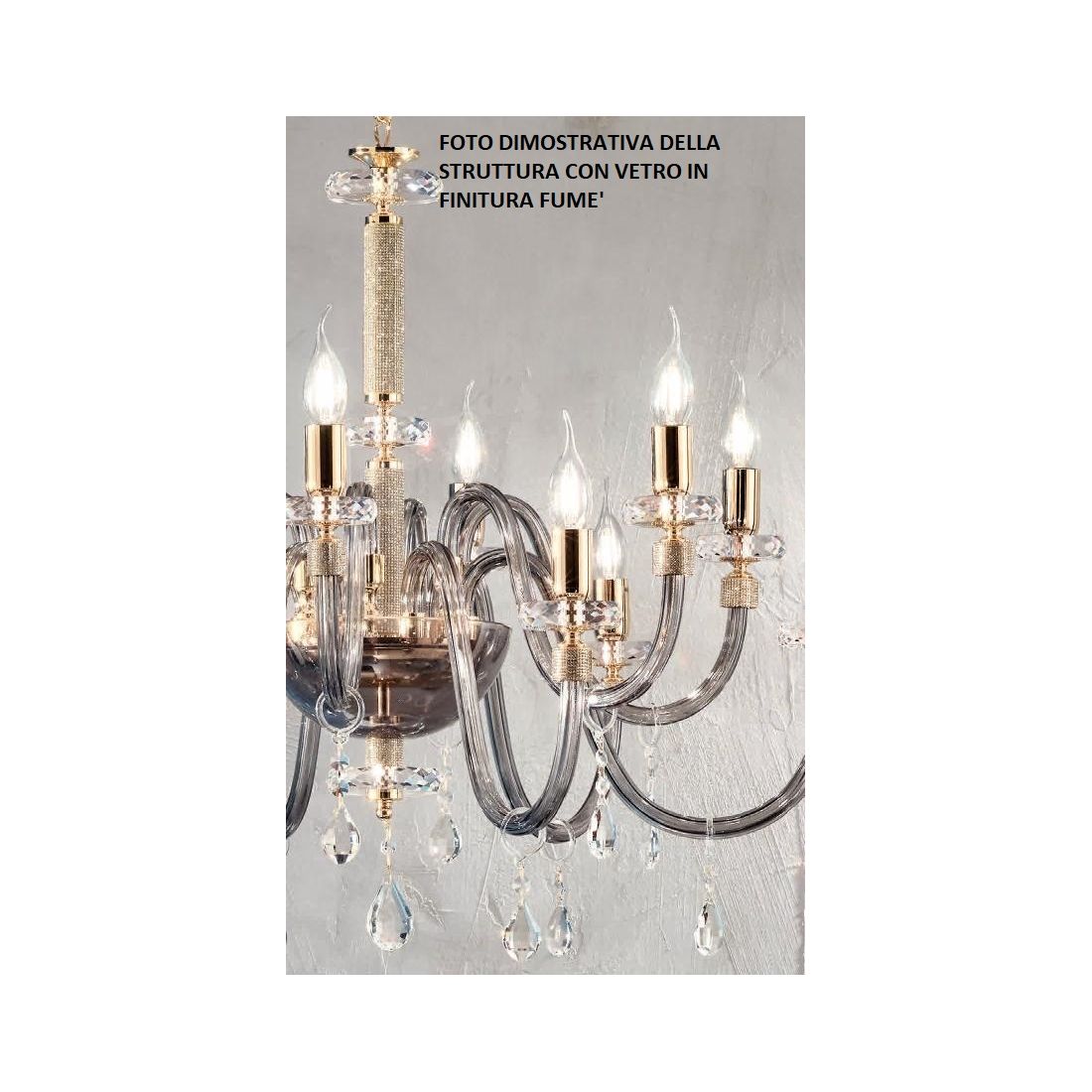 DIDO LAMPADARIO CLASSICO A 12 LUCI IN VETRO E CRISTALLO DISPONIBILE IN 5 FINITURE COLORE