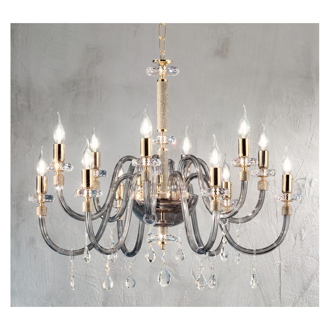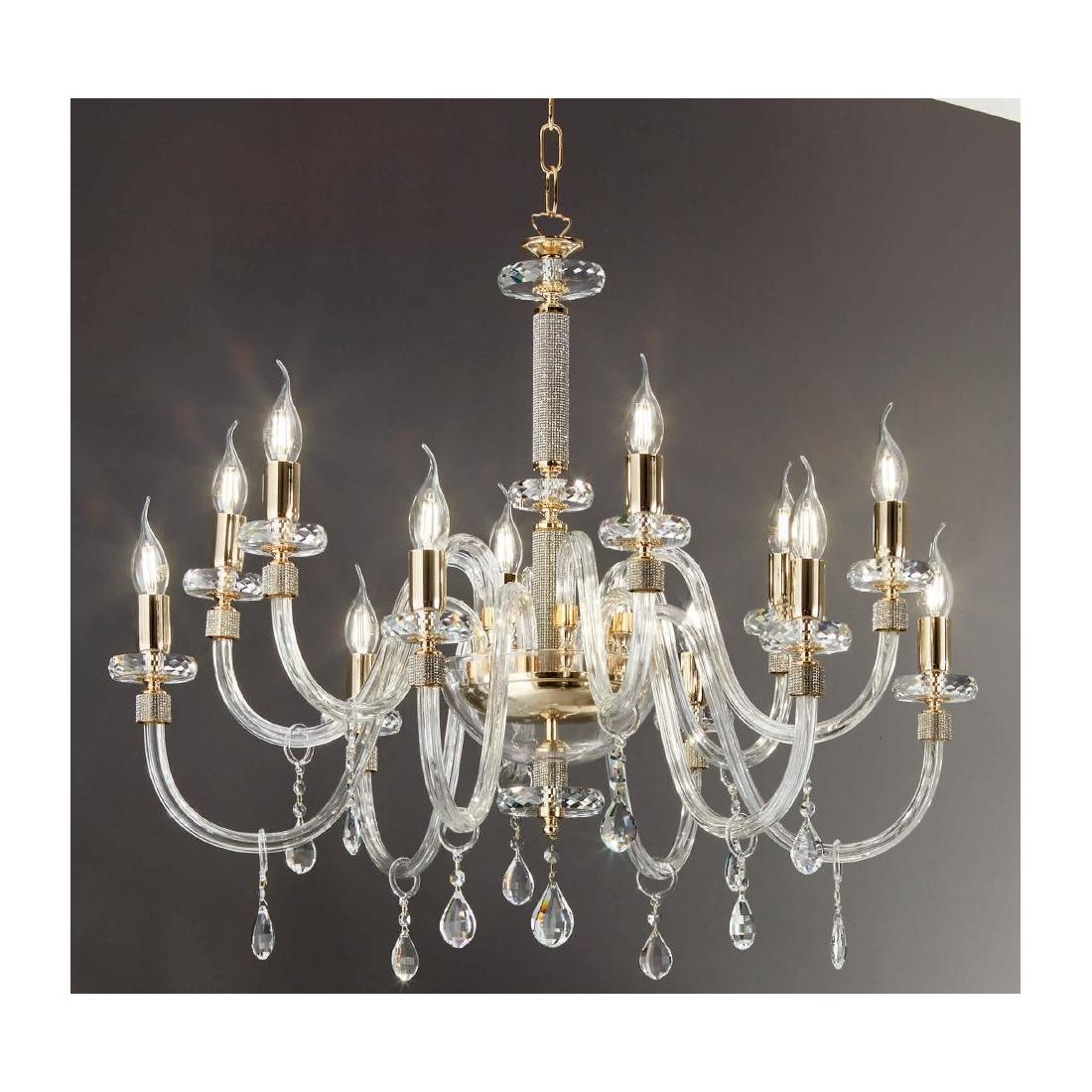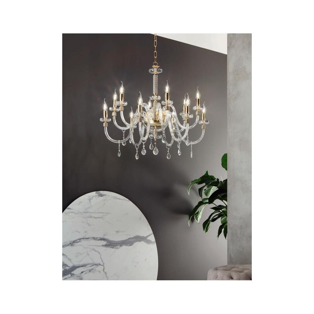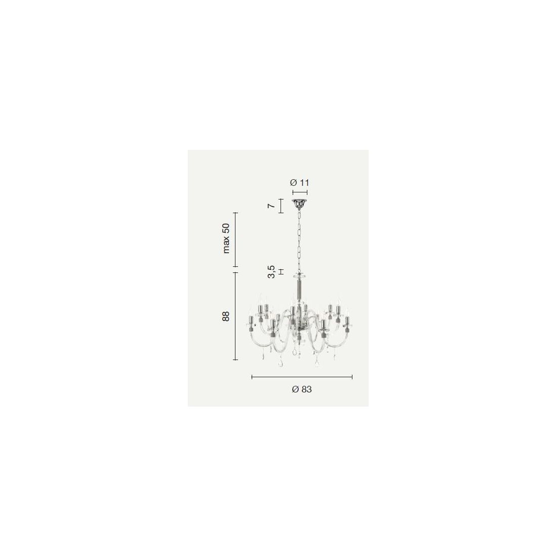 DIDO LAMPADARIO CLASSICO A 8 LUCI IN VETRO E CRISTALLO 5 FINITURE COLORE
