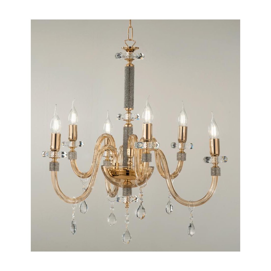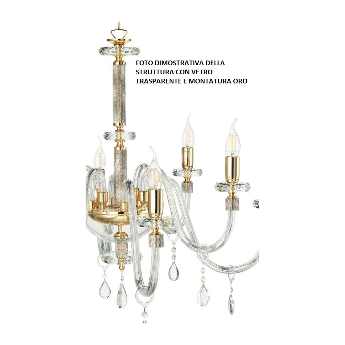 DIDO LAMPADARIO CLASSICO A 8 LUCI IN VETRO E CRISTALLO 5 FINITURE COLORE