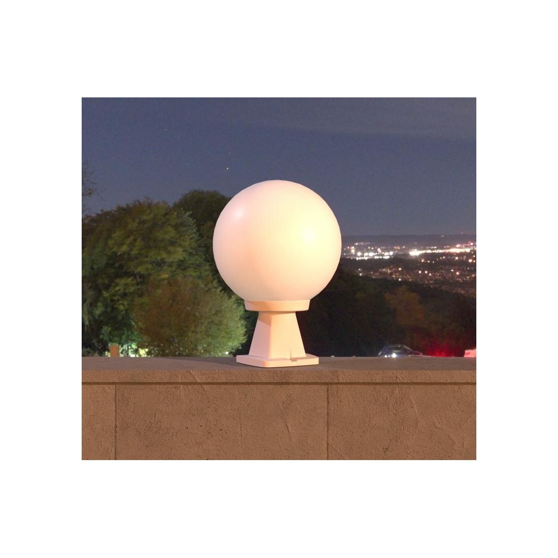 DISMA G250DISMA G250 PALETTO ALTEZZA 35 CM IN RESINA BIANCA O NERA CON SFERA BIANCO LATTE IP55 MADE IN ITALY
