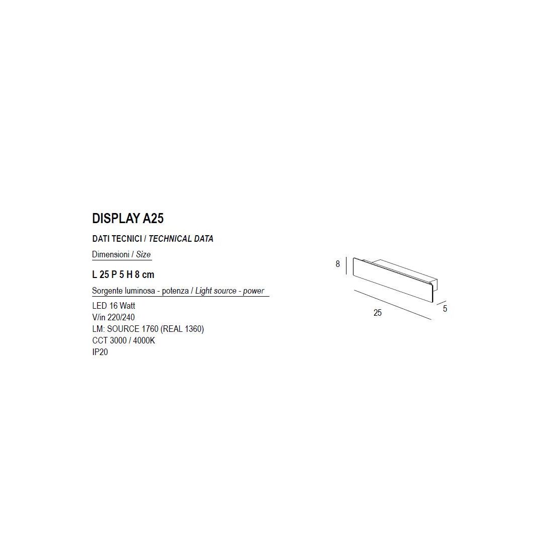 DISPLAY APPLIQUE LED 43W LUCE CCT 3000K-4000K IN METALLO 20 COLORI LUNGHEZZA 65 CM MODERNA