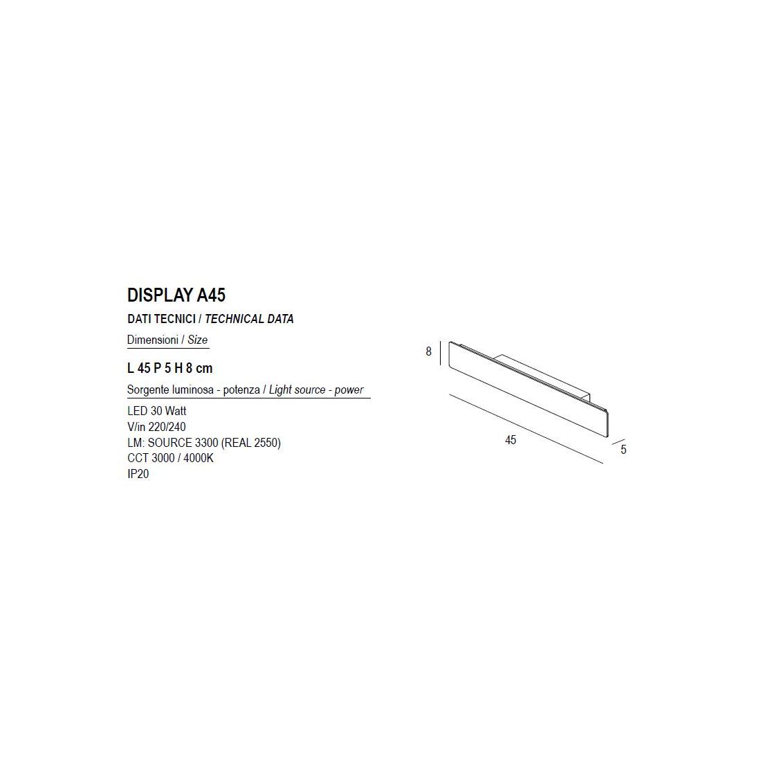 DISPLAY APPLIQUE LED 43W LUCE CCT 3000K-4000K IN METALLO 20 COLORI LUNGHEZZA 65 CM MODERNA