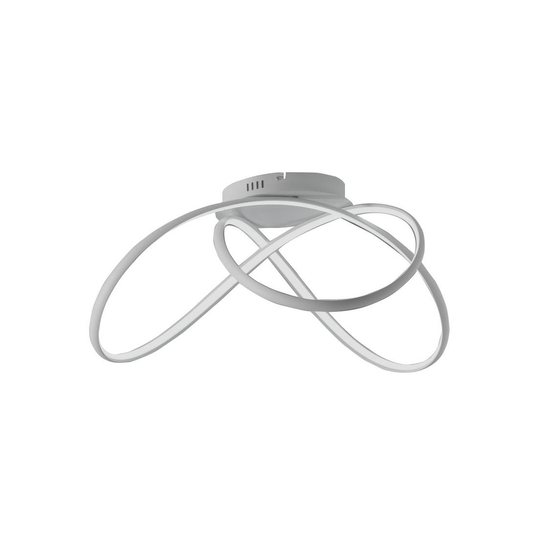 Plafoniera dallo stile moderno, con un design fresco e armonioso, che si presenta con una struttura realizzata in metallo di colore Bianco e con il diffusore in silicone opalino bianco attorcigliato.