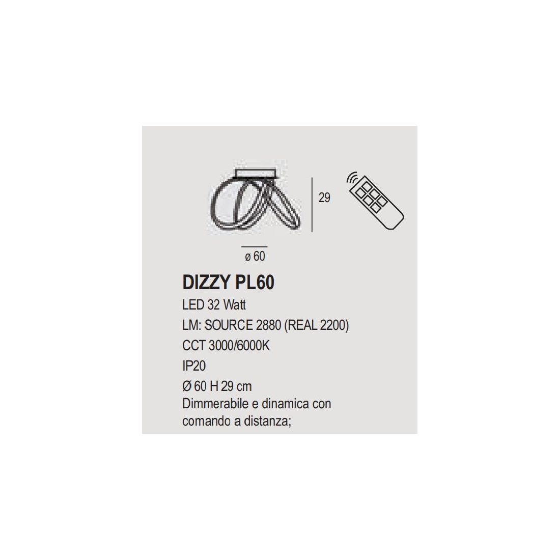 Sorgente luminosa: Led integrato da 32w - lumen 2200 - luce 3000k/6000k (nella versione con D60 cm)