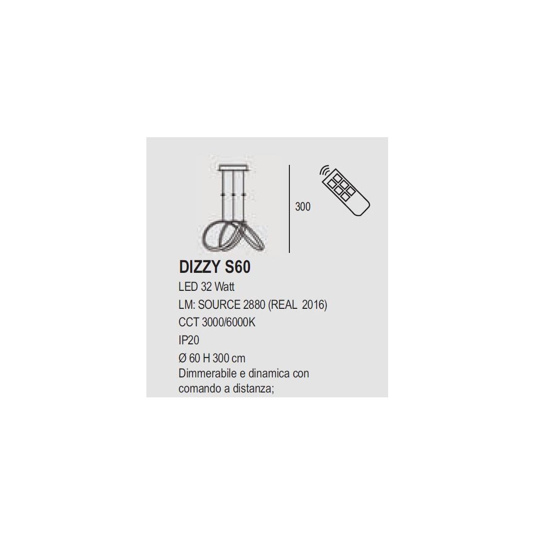 Sorgente luminosa: Led integrato da 32w - lumen 2016 - luce 3000k/6000k (nella versione con D60 cm)
