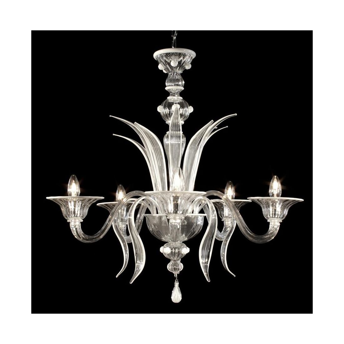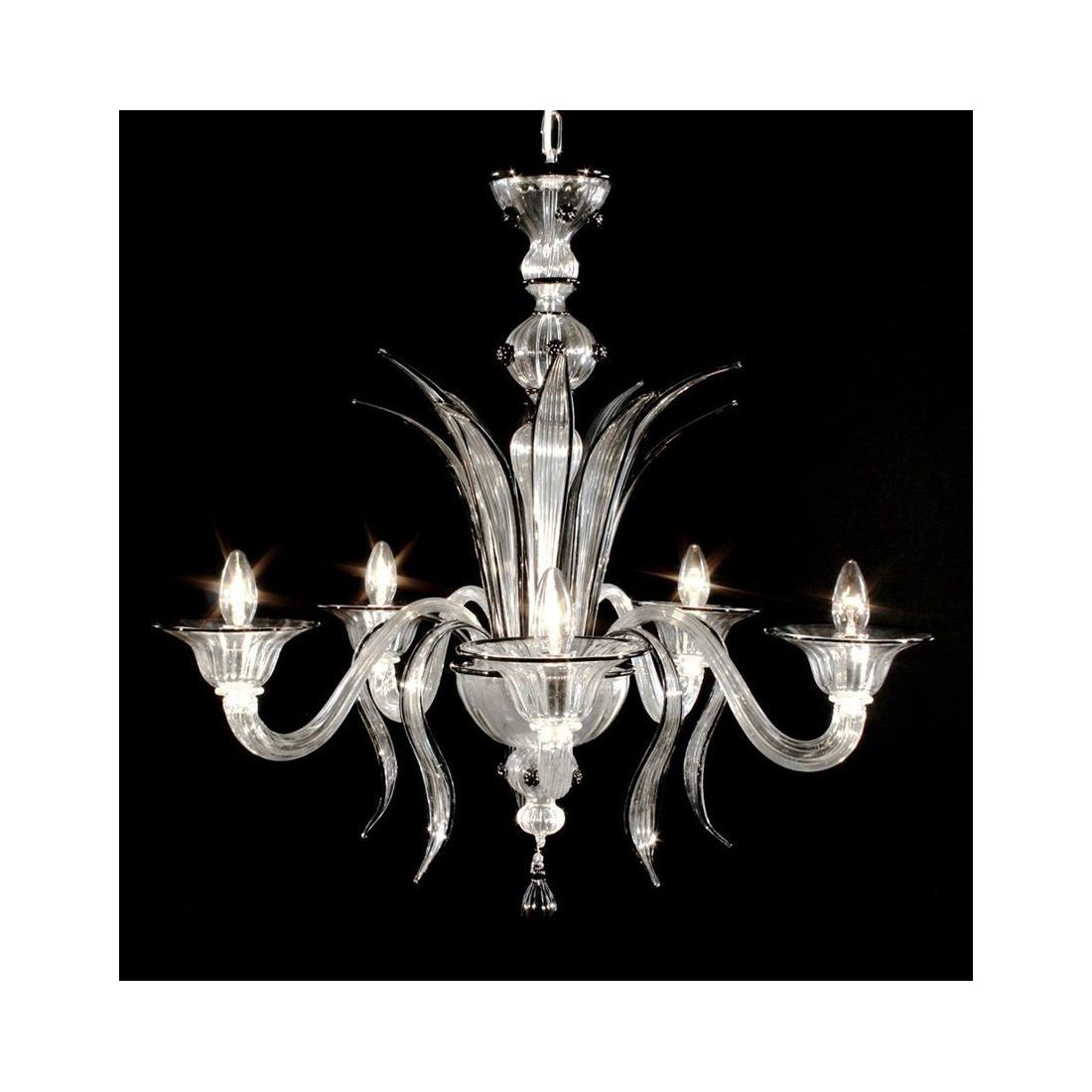 DOSSON LAMPADARIO 6 LUCI IN VETRO DI MURANO RIGATO LAVORATO A MANO 2 COLORI MADE IN ITALY