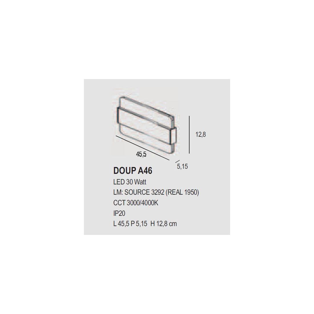 DOUP A66 PLAFONIERA APPLIQUE MODERNA LED 43W LUCE 3000-4000K FASCIA IN METALLO 20...