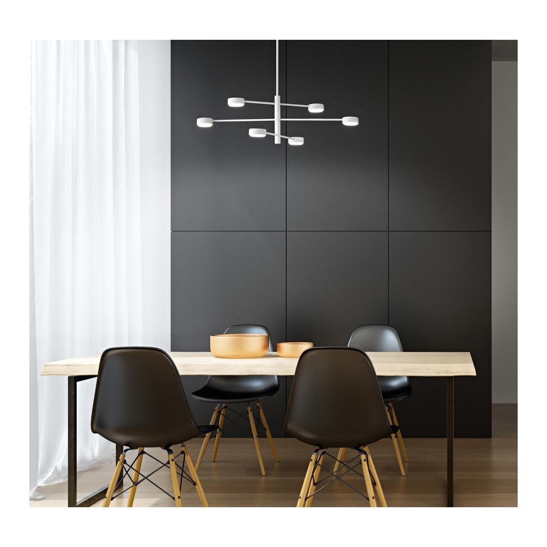 Dal perfetto equilibrio tra minimalismo e raffinatezza nasce questa sospensione a 6 luci che rappresenta una soluzione luminosa sofisticata e versatile ideale per arricchire ambienti contemporanei con un tocco di eleganza.